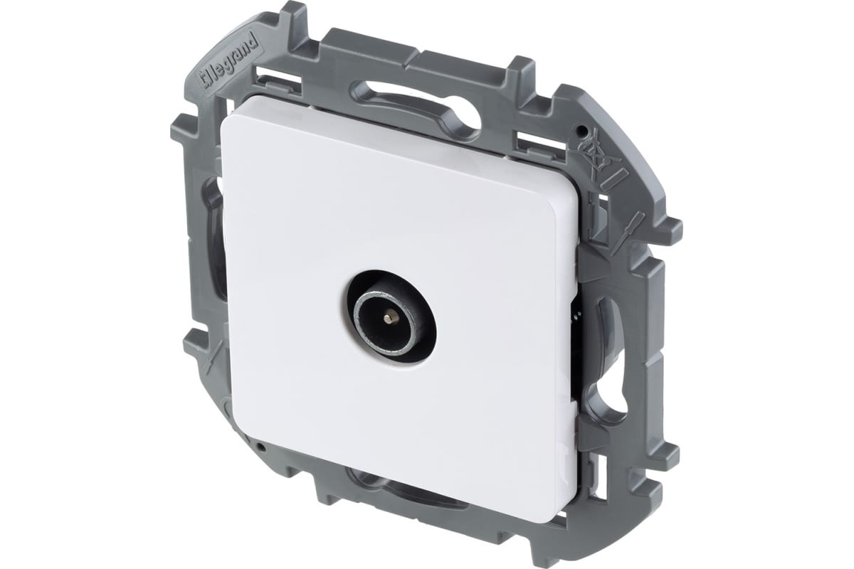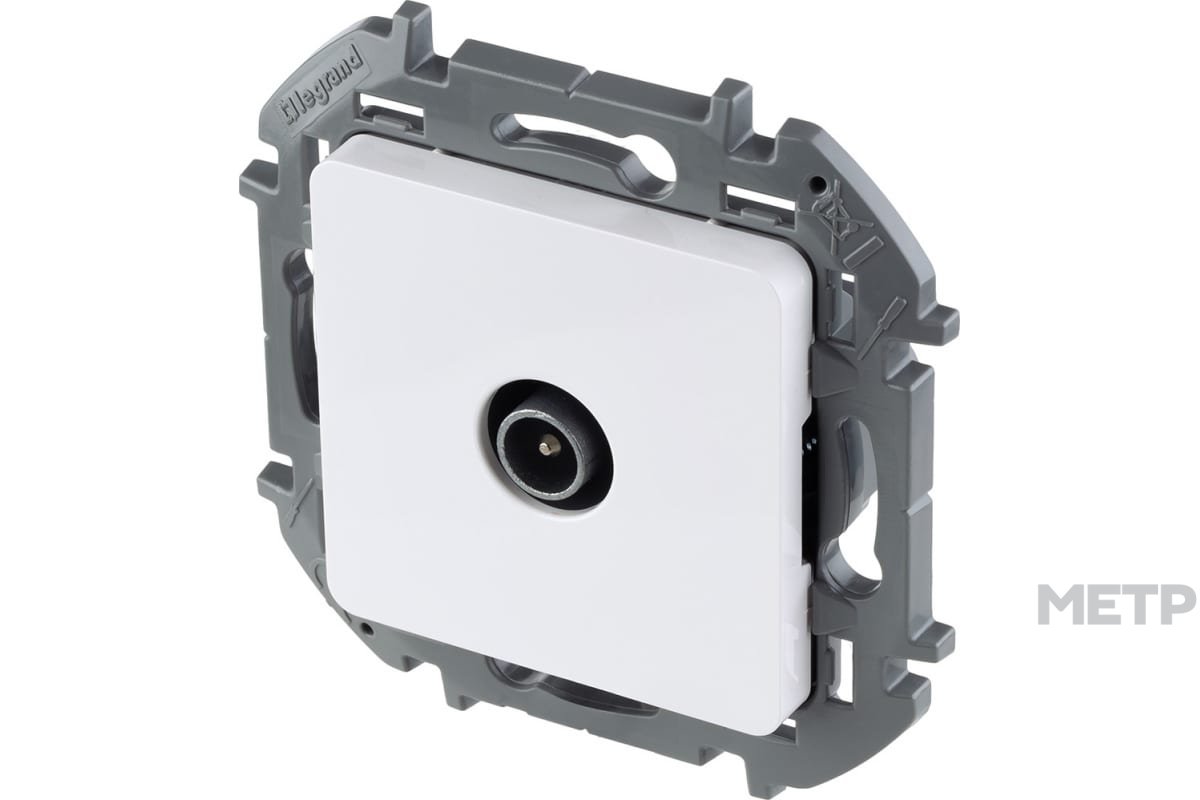 Розетка TV оконечная встраиваемая Legrand Inspiria белый используется для подключения одного ТВ приемника к антенне, а также для организации телевизионной сети по схеме "шлейф", когда к каждому телевизору шлейфом прокладывается одна общая линия от источника сигнала. Корпус механизма изготовлен из металлического сплава, обладает степенью экранирования Class A и защищает сигнал от электромагнитных помех. Лицевая панель изготовлена из качественного пластика ABS, устойчивого к загрязнению и воздействию УФ-излучения.