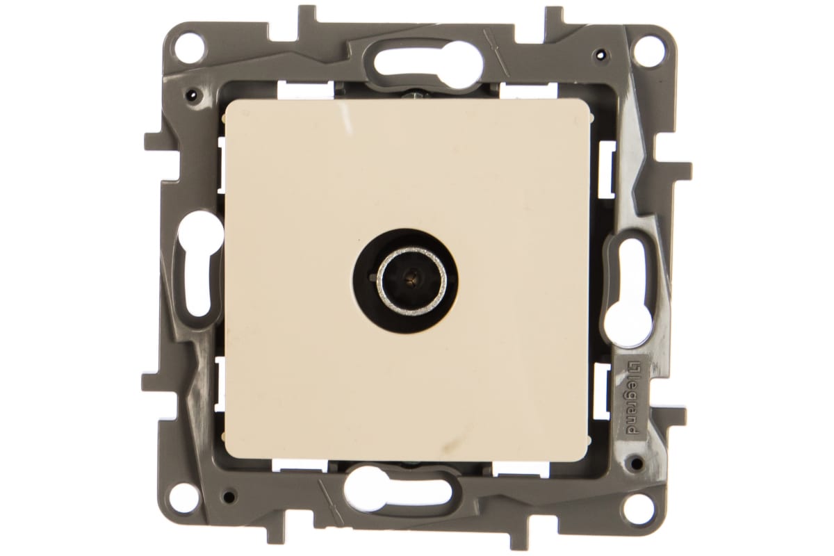 TV-розетка Etika тип "звезда", цвет слоновая кость используется для подключения одного ТВ приемника к антенне, а также для организации телевизионной сети по схеме "звезда", когда к каждому телевизору прокладывается своя линия от источника сигнала. Механизм изготовлен из металлического сплава и защищает соединение от электромагнитных помех.