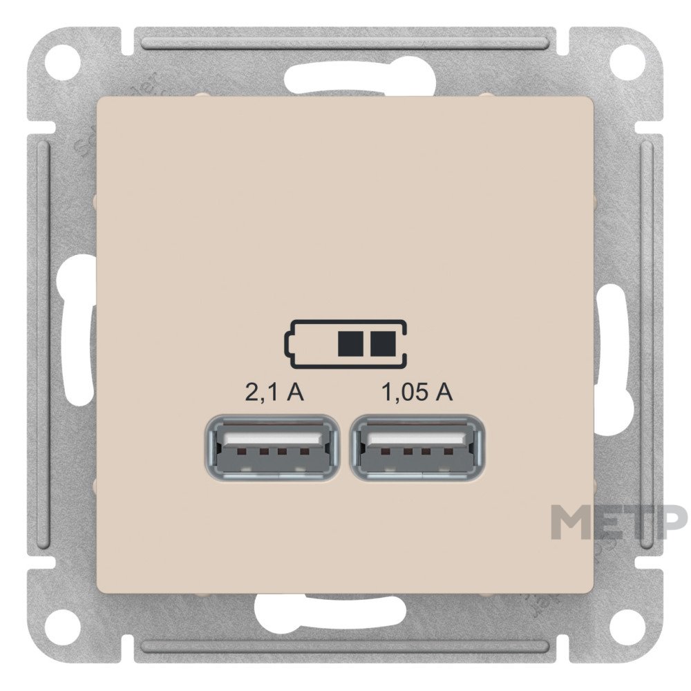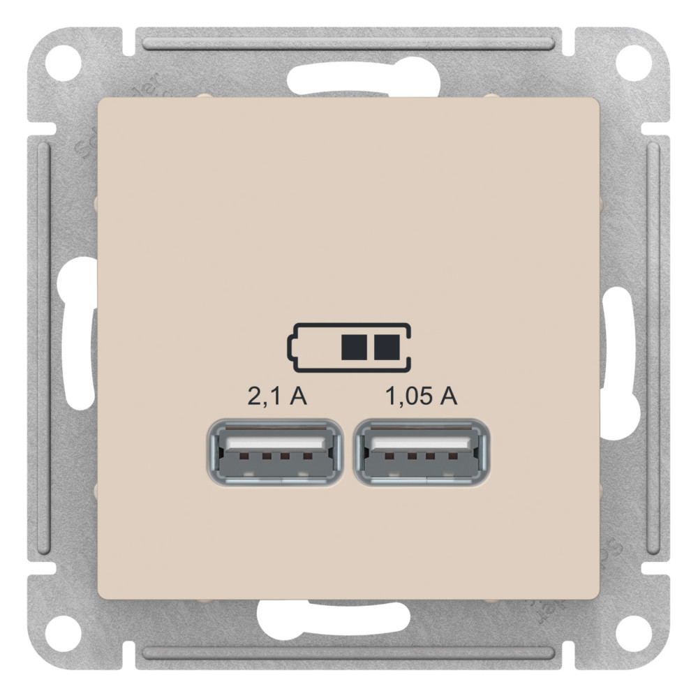 Розетка USB Atlas Design бежeвый, 2 порта, А+А предназначена для зарядки одного или двух мобильных устройств. Пластик с ионами серебра обеспечивает антибактериальный эффект. Лицевые детали из качественного ABS-пластика, устойчивого к царапинам и УФ-излучению. Усиленные прямые монтажные лапки для лучшей фиксации механизма в монтажной коробке.