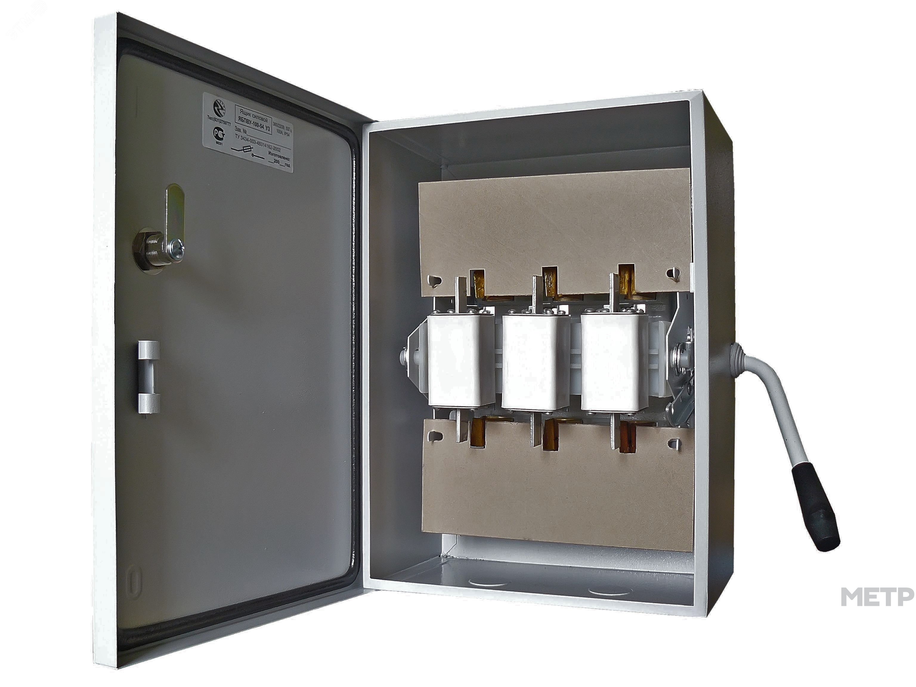 Рубильник в корпусе на 1 направление Элект ЯБПВУ 3Р 100А предназначен для нечастой коммутации силовых электрических цепей трехфазного переменного тока напряжением до 380В, а также для защиты их при перегрузках и коротких замыканиях. Используется конструкция передвижных плавких вставок, которые блокируют дверь во время работы. Комплектуется предохранителями серии ПН-2. Покраска порошковая, цвет корпуса - серый. Резиновое уплотнение. Сальник IP54. Тип привода- ручной, с боковой рукояткой.