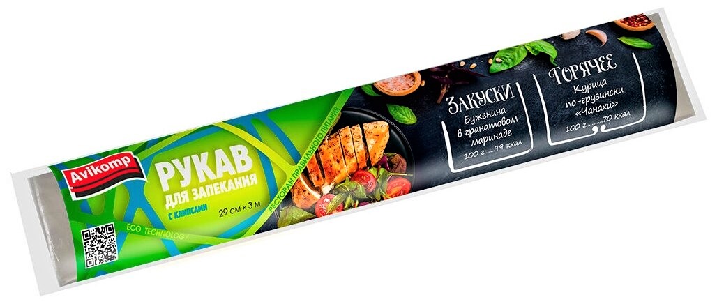 Рукав для запекания Eco 300х29 см сохранит витамины, макроэлементы и натуральный вкус продуктов при запекании духовых шкафах и микроволновых печах. В рукаве еда готовится быстрее, при этом не требуется добавление масла, все блюда готовятся в собственном соку, что делает их сочными и менее калорийными. Рукав предотвращает пригорание, сохраняет чистоту духовки и посуды. На каждой упаковке вы найдете рецепты вкусных и полезных блюд.