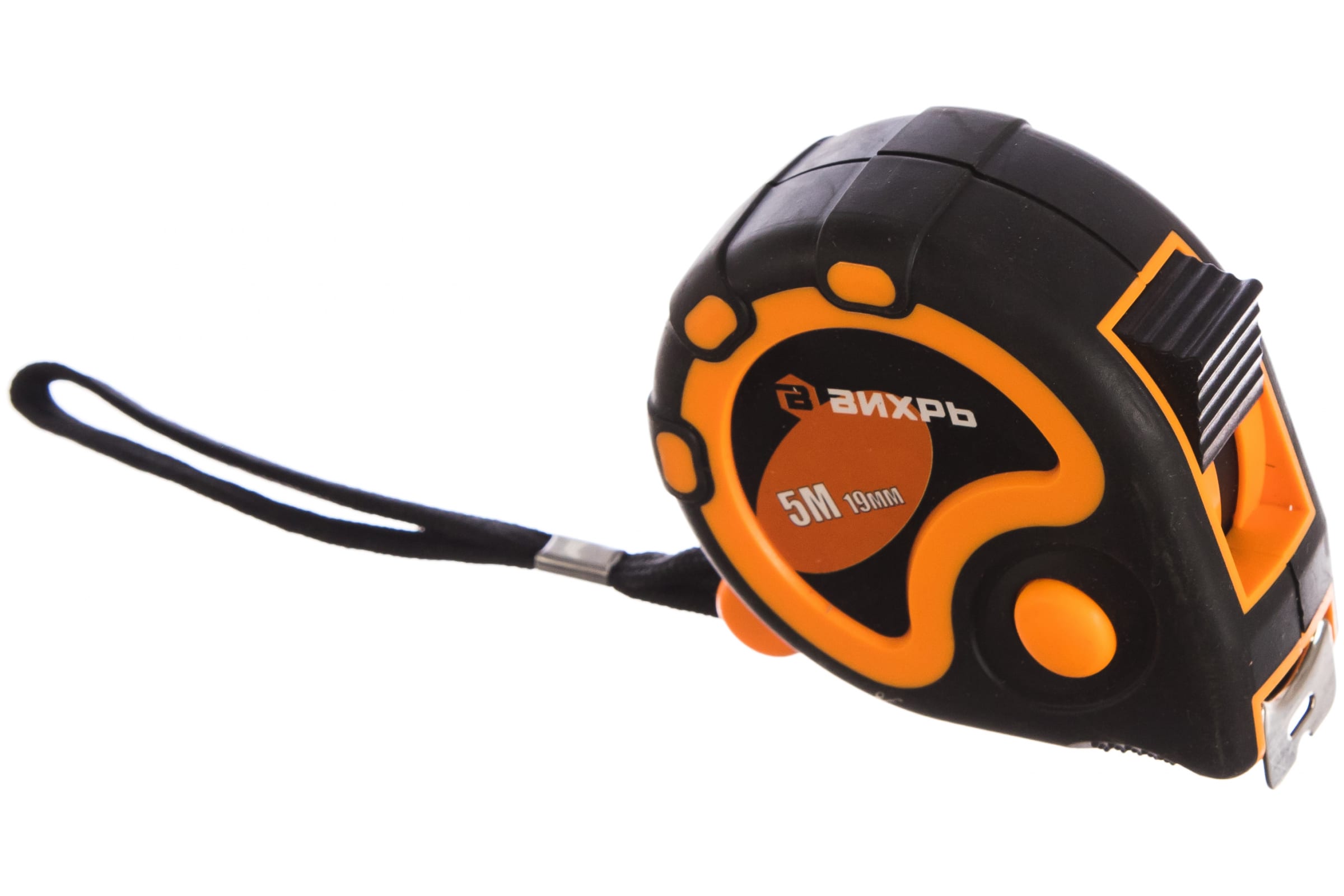 Рулетка Вихрь двухкомпонентный пластик 19 мм 5 м — ударопрочная пластмасса корпуса надежно защитит инструмент от деформаций и механических повреждений. Лента для измерений выполнена из стали, покрытой защитным полимером, и надежно фиксируется, позволяя выполнять работы в одиночку.