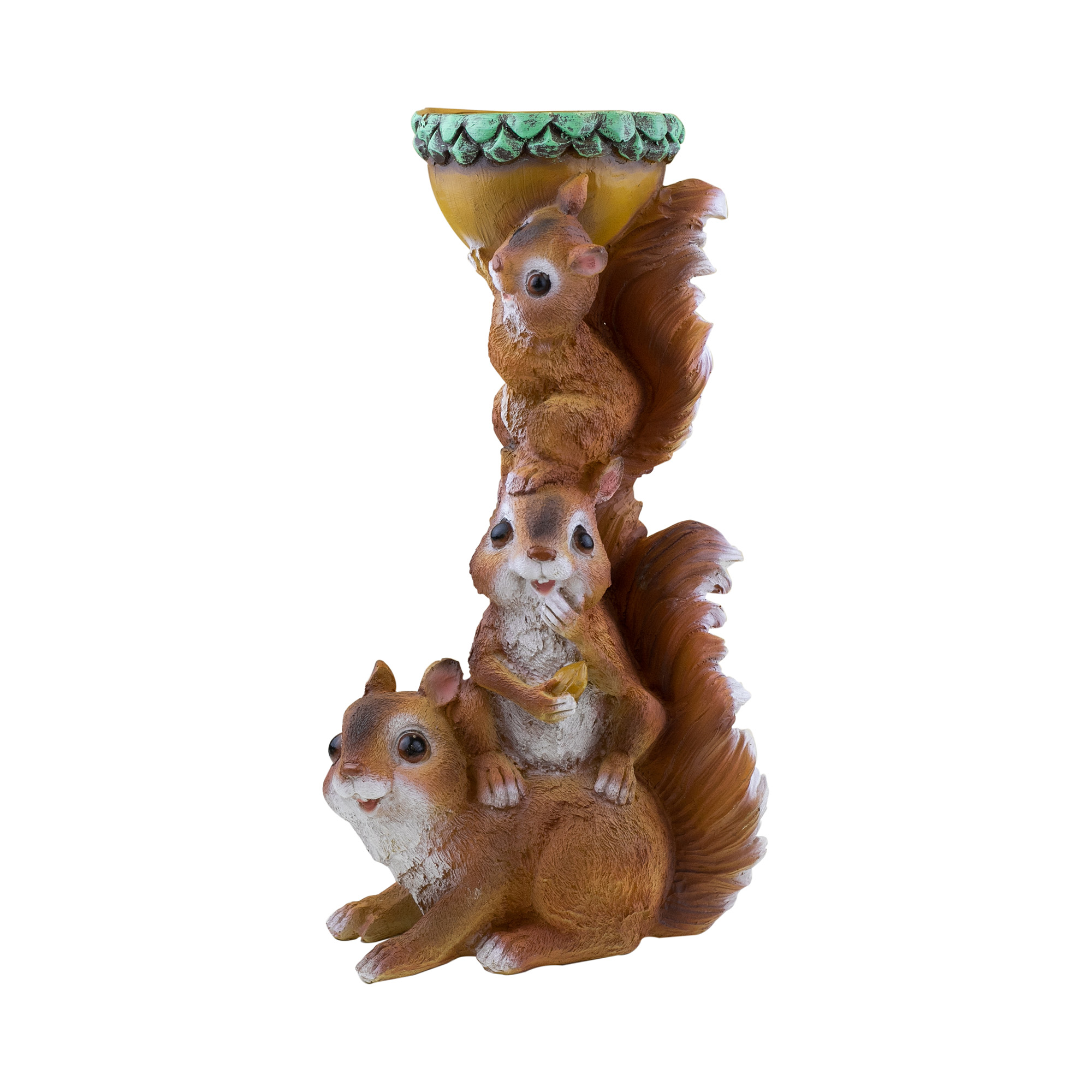 Садовая фигура «Поилка с белками», высотой 38 см, выполнена из водоустойчивого полистоуна. Она несет не только декоративную, но также функциональную нагрузку, являясь одновременно поилкой для домашних животных. Прочные пигменты долгое время сохраняют яркость, не подвергаясь воздействию ультрафиолетовых лучей и других атмосферных явлений.