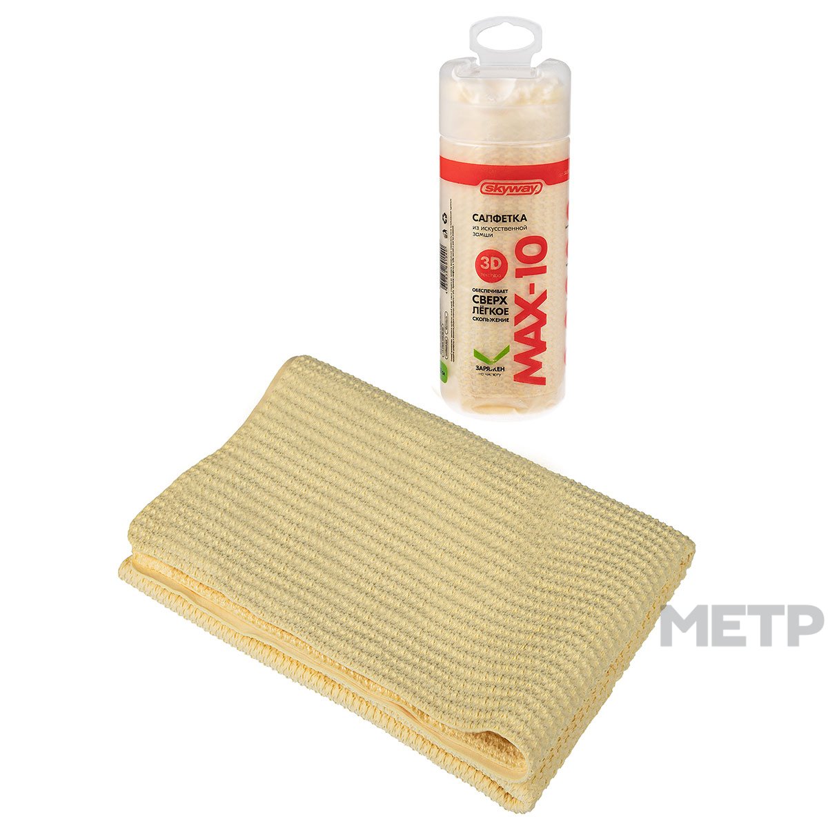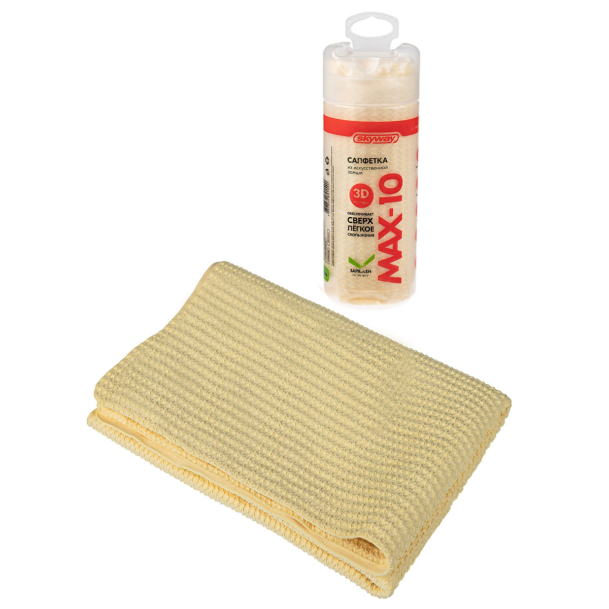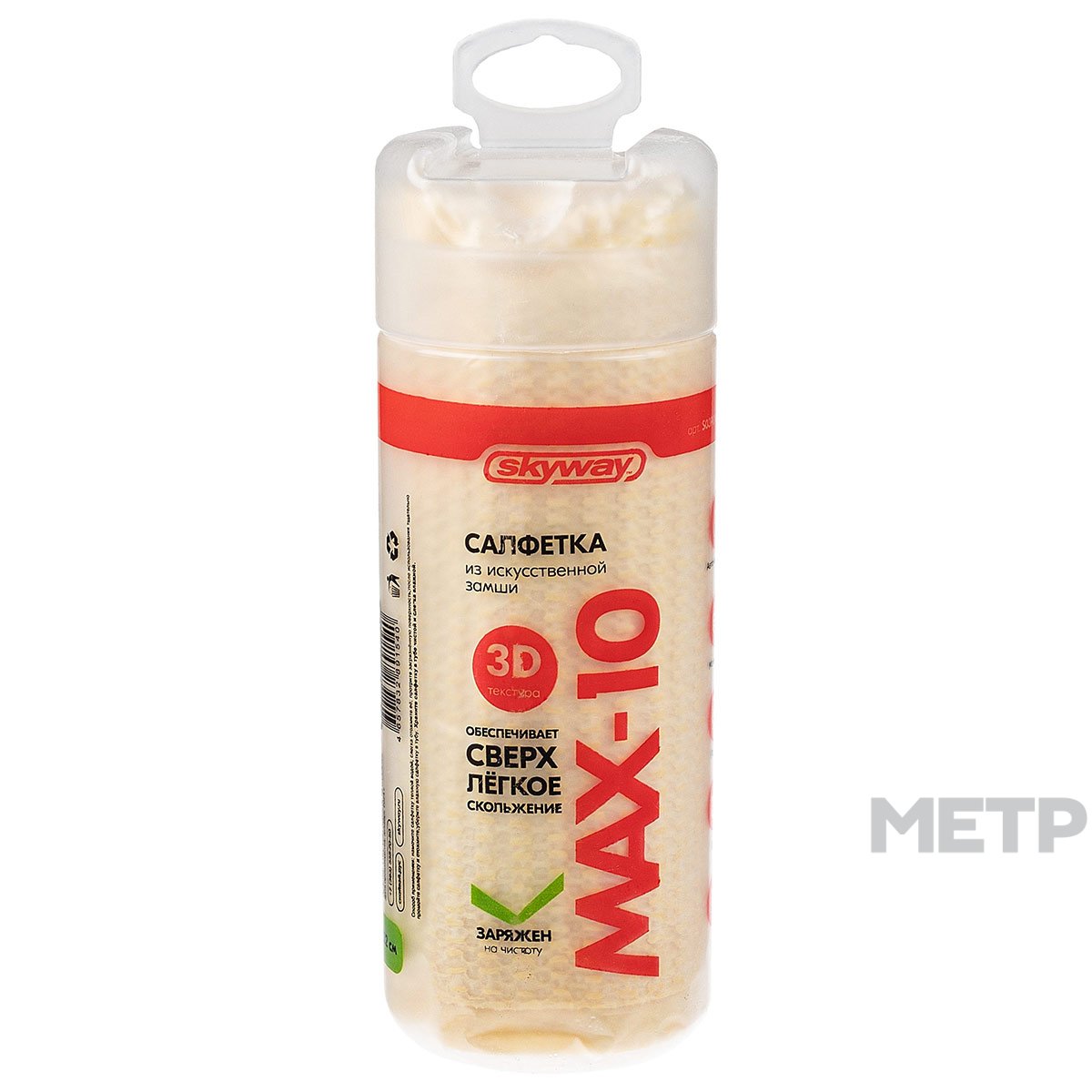 Салфетка в тубе универсальная с 3D текстурой - мягкая и деликатная салфетка SKYWAY из искусственной замши обладает повышенной влаговпитываемостью. Замша не оставляет разводов, а также устойчива к растяжению и скручиванию. Салфетка надолго сохраняет свои свойства и легко моется. Подходит для протирки стекол приборной панели, кузова, колес автомобиля. После использования салфетку необходимо отжать и положить в тубус для хранения.