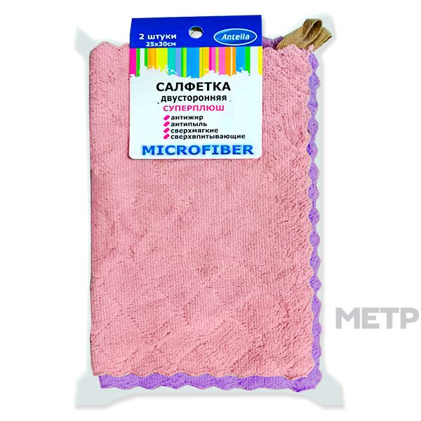 СУПЕРПЛЮШ салфетка из микрофибры двусторонняя 25*30см 2шт