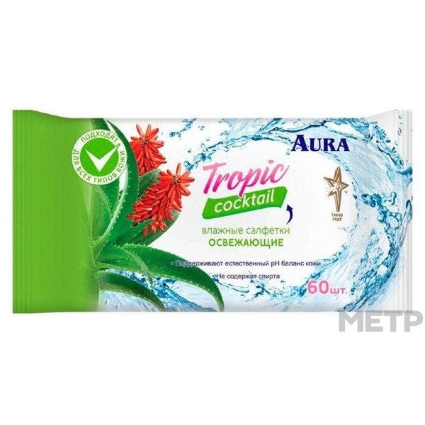Салфетки влажные Aura Tropic Cocktail абсолютно не содержат спирта. Они обеспечивают деликатный и нежный уход за кожей лица и тела, делая ее гладкой и бархатистой. На протяжении всего дня сохраняется ощущение свежести и комфорта. Салфетки идеально подходят как для взрослых, так и для детей.