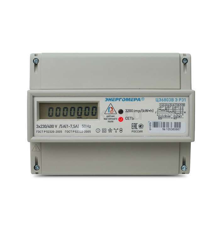 Счетчик электроэнергии трехфазный однотарифный Энергомера ЦЭ 6803В Р31 1А - 7,5А предназначен для измерения потребления электрической энергии в трехфазных сетях переменного тока. Устойчив к климатическим, механическим и электромагнитным воздействиям.