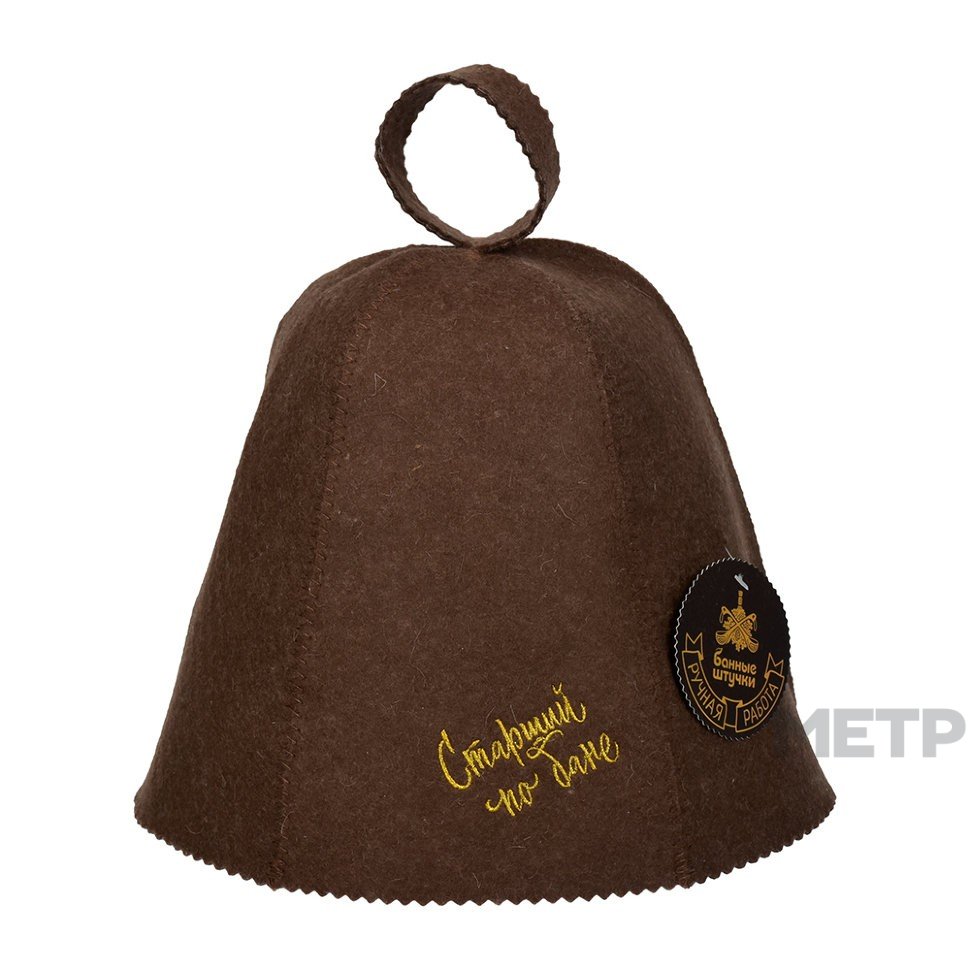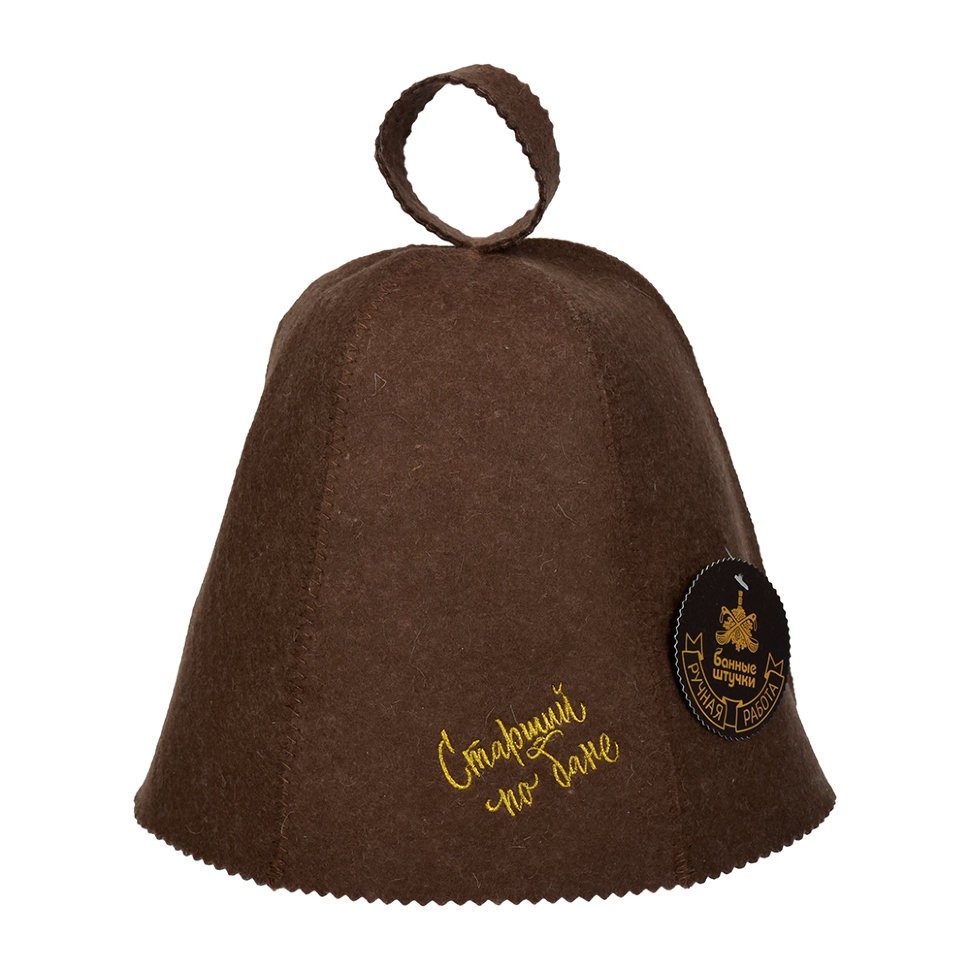 Шапка для бани Банные штучки "Старший по бане" шерсть станет любимым аксессуаром банщика, она привлекает внимание, поднимает настроение и надежно защищает любителя попариться от перегрева и теплового удара. Шапка из натурального войлока сохраняет оптимальную температуру головы, позволяя дольше находиться в парной и получать удовольствие от банных процедур, быстро впитывает пот и влагу, защищая глаза, оберегает волосы и кожу головы от пересыхания и ожогов.