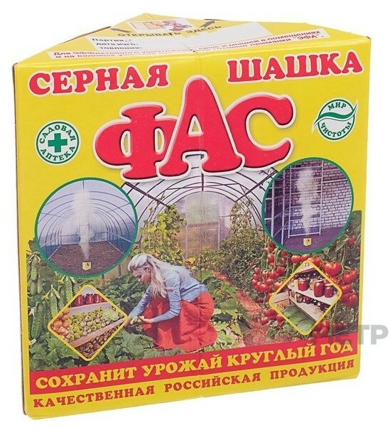 Шашка серная Мир Чистоты 300 гр одно их эффективнейших средств, предназначенных для борьбы с вредителями, являющимися возбудителями инфекций бактериального характера, плесени, грибка. Защищает от вредных насекомых. Рекомендовано к использованию в плодохранилищах.