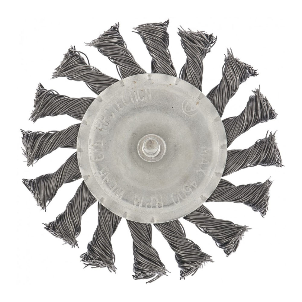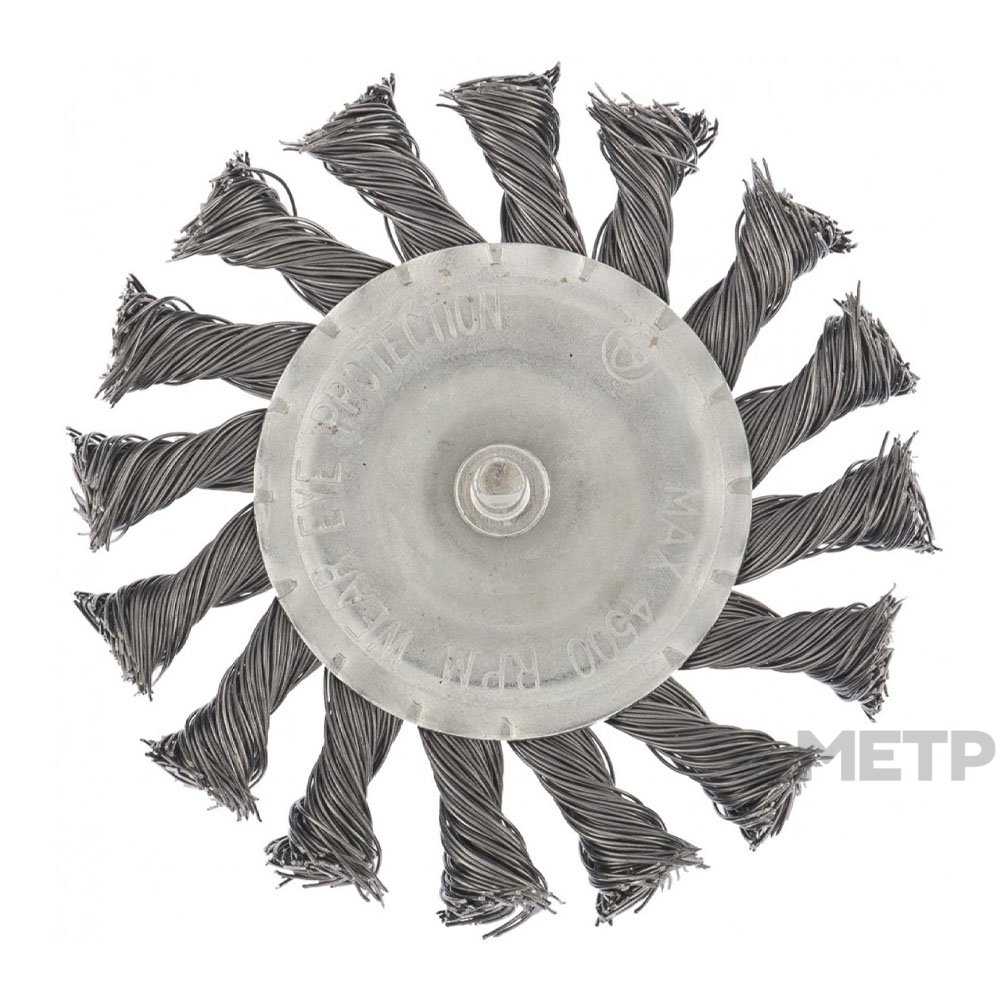 Щетка дисковая Matrix 74432 100 мм пригодится для снятия слоя краски, коррозии или различных загрязнений с поверхностей изделий, изготовленных из разнообразных материалов. Приспособление из проволоки позволяет обработать предметы сложной формы. Для использования дисковой щётки потребуется дрель.
