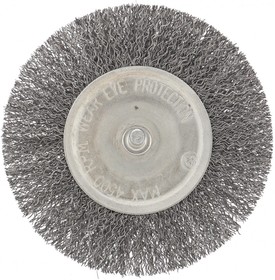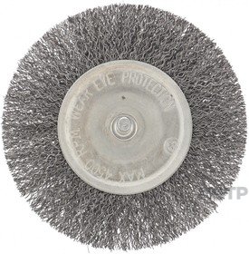 Корщетка для дрели дисковая 100мм витая проволока сталь наиболее удобное приспособление для удаления ржавчины и старого лакокрасочного покрытия с поверхностей деревянных, металлических и пластиковых заготовок. Ворсинки проникают во все пазы и углубления, но не изменяют сложную форму изделия.