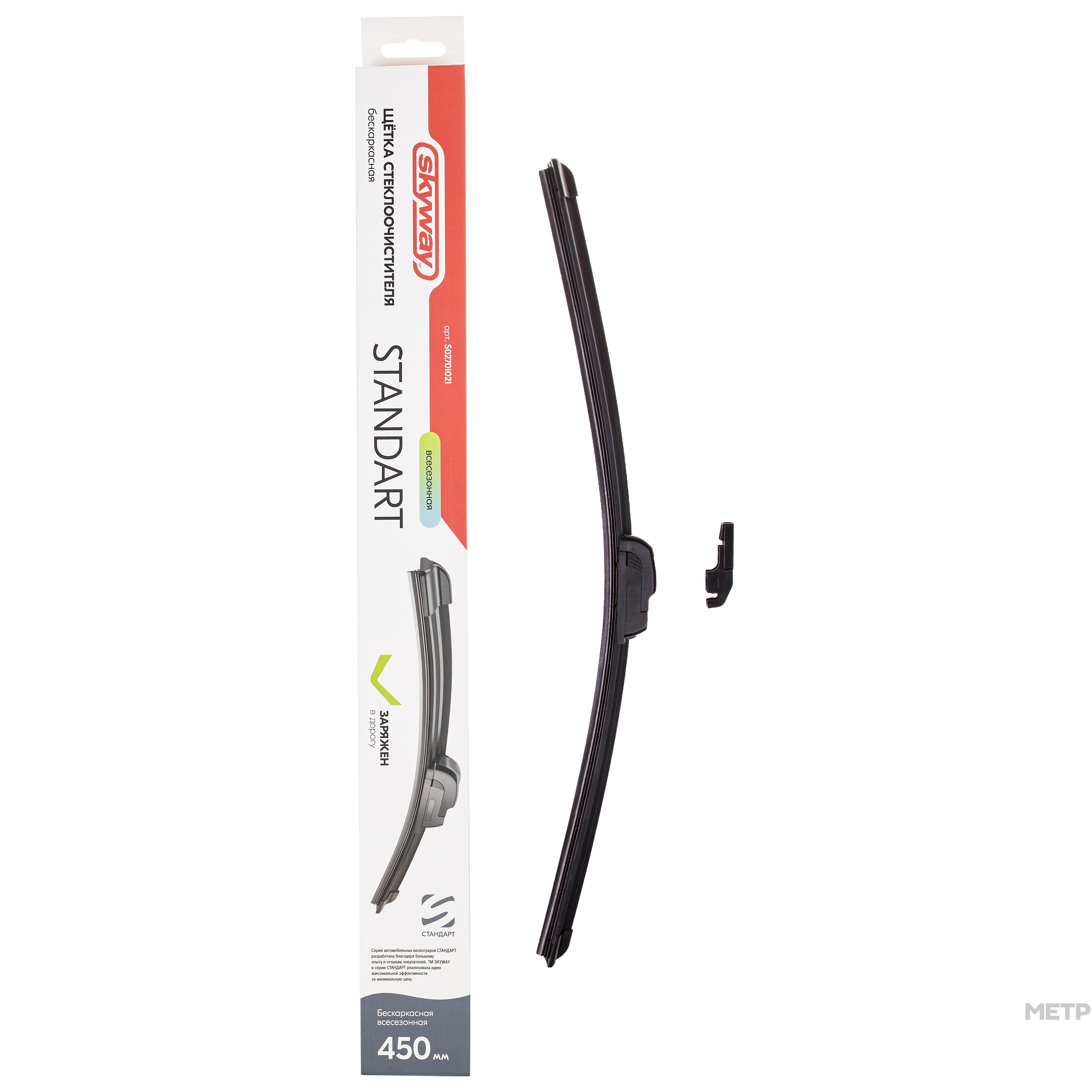Щетка стеклоочистителя бескаркасная SKYWAY S02701021 450 мм - обеспечивает равномерное очищение всей поверхности стекла. Благодаря технологическому усовершенствованию щетки SKYWAY способны удалять даже самые мелкие частицы воды. Натуральный каучук, из которого произведены щетки, и графитовое напыление позволяют значительно снизить уровень шума, а также увеличивают срок службы. И это еще не все: щетка скользит по поверхности с минимальным усилием, а резина остается эластичной в жару, мороз и даже под действием химических реагентов. Щетка плотно прилегает к стеклу даже на большой скорости, надежно защищая его от загрязнений.