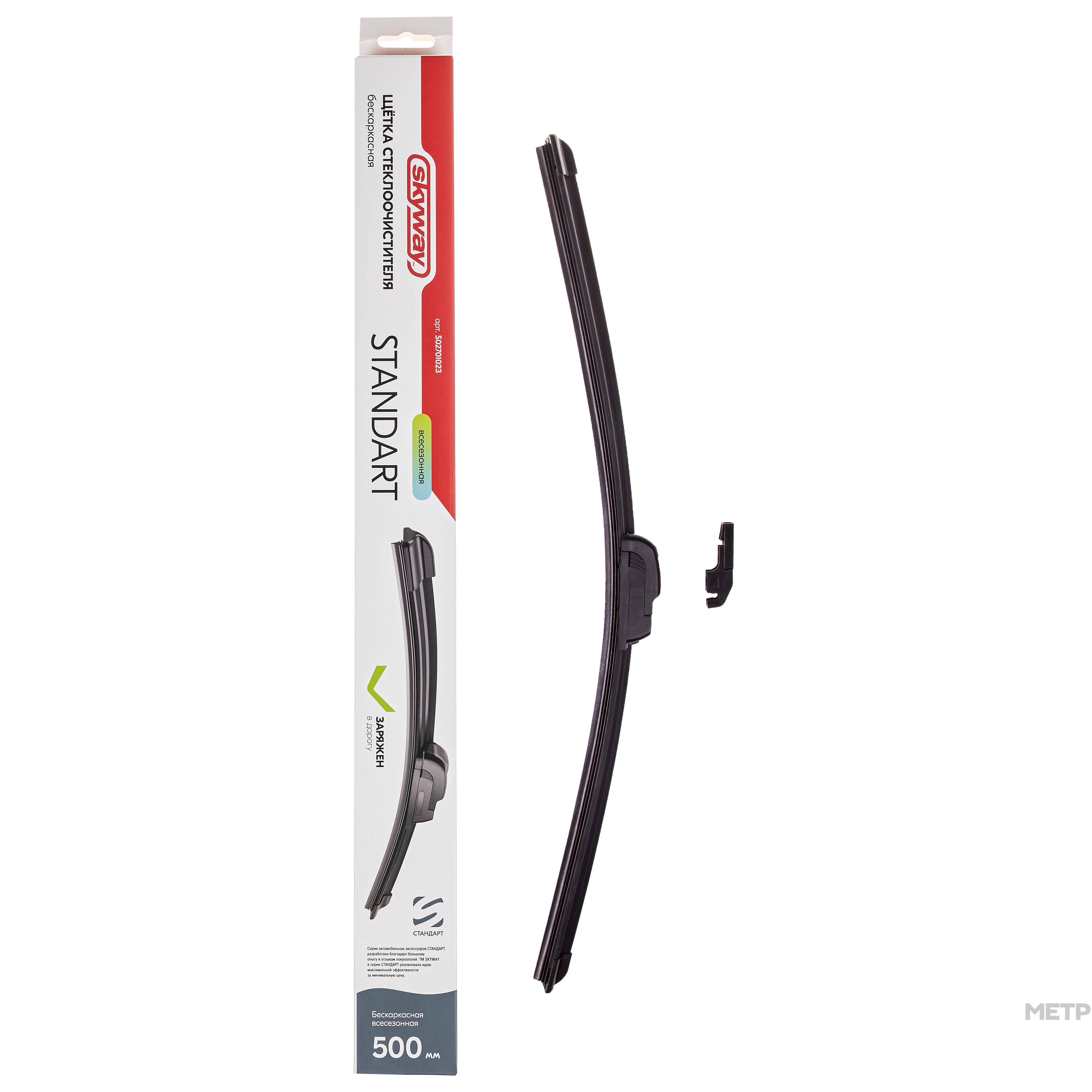 Щетка стеклоочистителя бескаркасная SKYWAY S02701023 500 мм - обеспечивает равномерное очищение всей поверхности стекла. Благодаря технологическому усовершенствованию щетки SKYWAY способны удалять даже самые мелкие частицы воды. Натуральный каучук, из которого произведены щетки, и графитовое напыление позволяют значительно снизить уровень шума, а также увеличивают срок службы. И это еще не все: щетка скользит по поверхности с минимальным усилием, а резина остается эластичной в жару, мороз и даже под действием химических реагентов. Щетка плотно прилегает к стеклу даже на большой скорости, надежно защищая его от загрязнений.