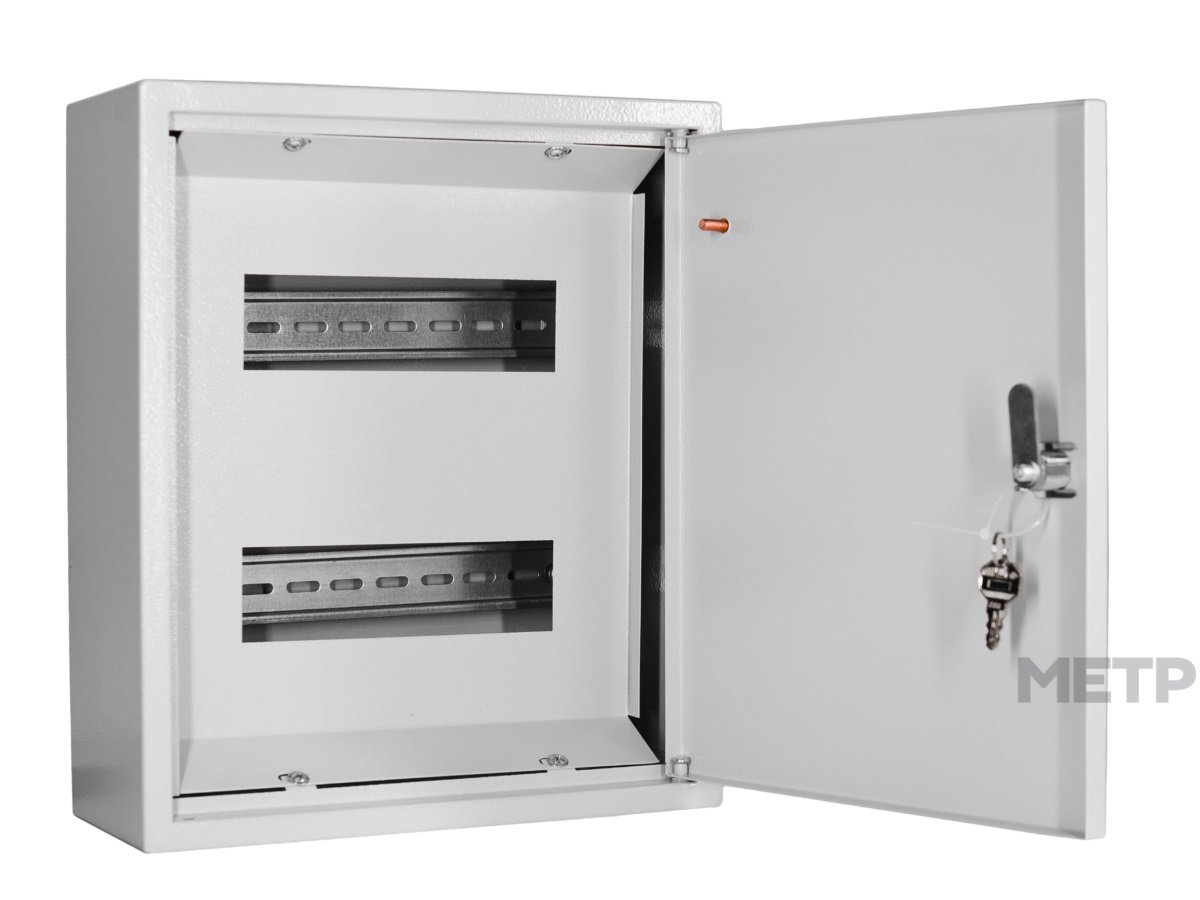 Щит навесной Mecas 18 модулей металл. ЩРН (Щит распределительный навесной) - устройство, предназначенное для приема и распределения электрической энергии при напряжении менее 1000 В одно- и трехфазного переменного тока частотой 50—60 Гц, нечастого включения и отключения линий групповых цепей, а также для их защиты при перегрузках и коротких замыканиях. Применяется в осветительных и силовых установках производственных, общественных, административных и других подобных зданий.