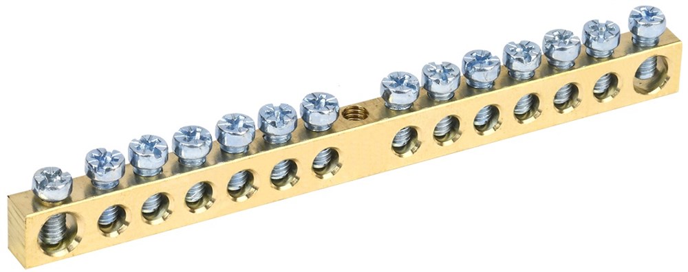 Шина нулевая IEK без изолятора 6х9 14/2 14. Применяются в щитовом оборудовании для подсоединения нулевых рабочих (N) и нулевых защитных проводов (РЕ). Крепление шины предусмотрено по центру (типы 8/1; 14/1) и по краям (типы 8/2 и 14/2) через изолятор нулевой шины на 35 мм монтажную DIN-рейку и через угловые изоляторы нулевой шины, а также непосредственно на панель щита. При подключении к шинам медных многожильных проводов рекомендуется оконцевание их наконечниками-гильзами. Выполнены из латуни.