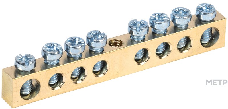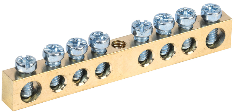 Шина нулевая IEK без изолятора 6х9 8/1 8. Применяются в щитовом оборудовании для подсоединения нулевых рабочих (N) и нулевых защитных проводов (РЕ). Крепление шины предусмотрено по центру (типы 8/1; 14/1) и по краям (типы 8/2 и 14/2) через изолятор нулевой шины на 35 мм монтажную DIN-рейку и через угловые изоляторы нулевой шины, а также непосредственно на панель щита. При подключении к шинам медных многожильных проводов рекомендуется оконцевание их наконечниками-гильзами. Выполнены из латуни.