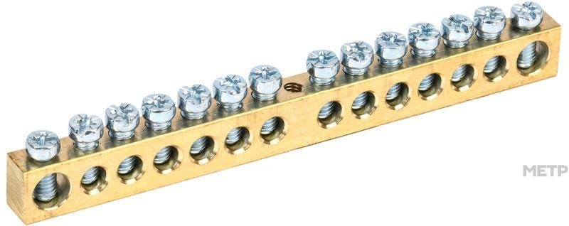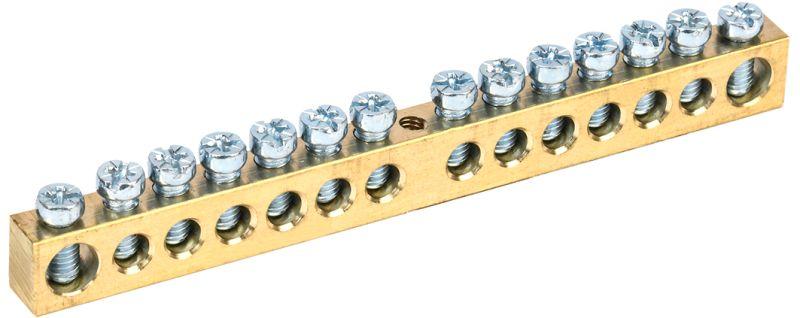 Шина нулевая IEK без изолятора 8х12 14/1 14 групп/крепеж по центру. Применяются в щитовом оборудовании для подсоединения нулевых рабочих (N) и нулевых защитных проводов (РЕ). Крепление шины предусмотрено по центру (типы 8/1; 14/1) и по краям (типы 8/2 и 14/2) через изолятор нулевой шины на 35 мм монтажную DIN-рейку и через угловые изоляторы нулевой шины, а также непосредственно на панель щита. При подключении к шинам медных многожильных проводов рекомендуется оконцевание их наконечниками-гильзами. Выполнены из латуни.