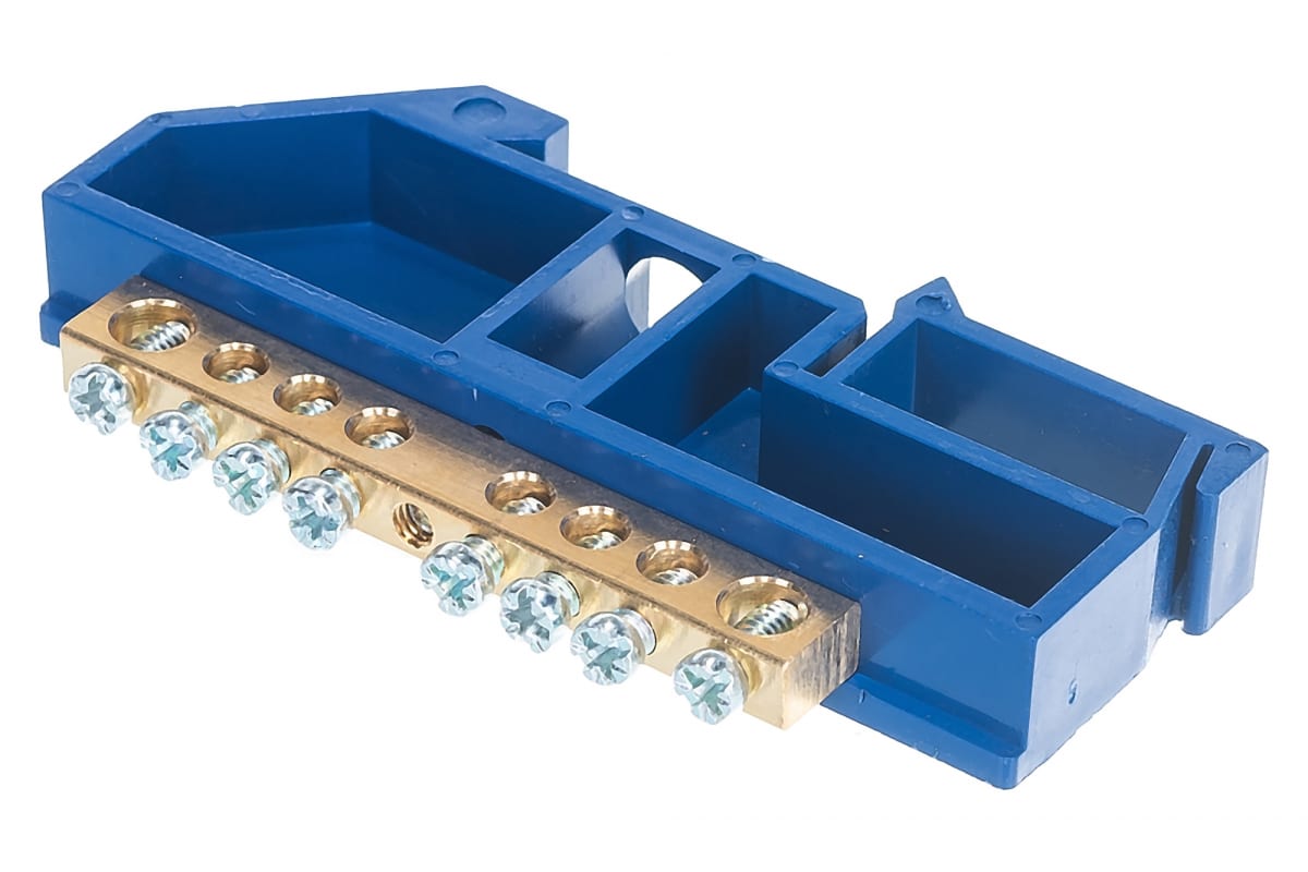 Шина нулевая IEK c DIN-изолятором ШНИ-6х9-Д 8. Шины с изолятором типа ШНИ предназначены для электрического и механического соединения нулевых, защитных и фазных проводников. Конструктивно шины ШНИ выполнены из латунной шины, установленной на пластиковый изолятор или в изолятор, изготовленный из самозатухающего пластика. Нормальными условиями эксплуатации шин являютcя: - температура окружающей среды от –40 до +50 С; - среднее значение относительной влажности не более 90%.