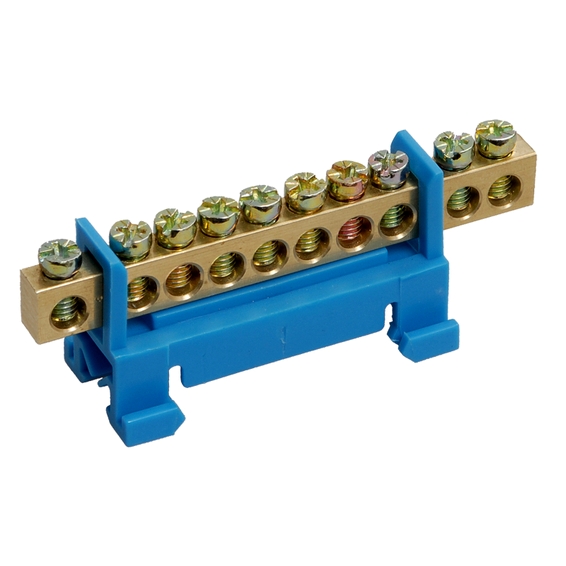 Шина нулевая IEK с DIN-изолятором типа "Стойка" ШНИ-6х9-С 12. Шины с изолятором типа ШНИ предназначены для электрического и механического соединения нулевых, защитных и фазных проводников. Конструктивно шины ШНИ выполнены из латунной шины, установленной на пластиковый изолятор или в изолятор, изготовленный из самозатухающего пластика. Нормальными условиями эксплуатации шин являютcя: - температура окружающей среды от –40 до +50 С; - среднее значение относительной влажности не более 90%.