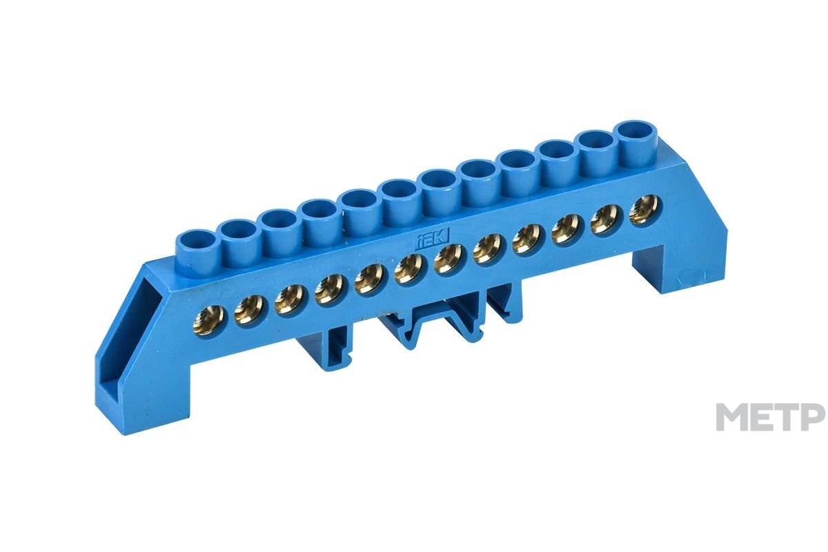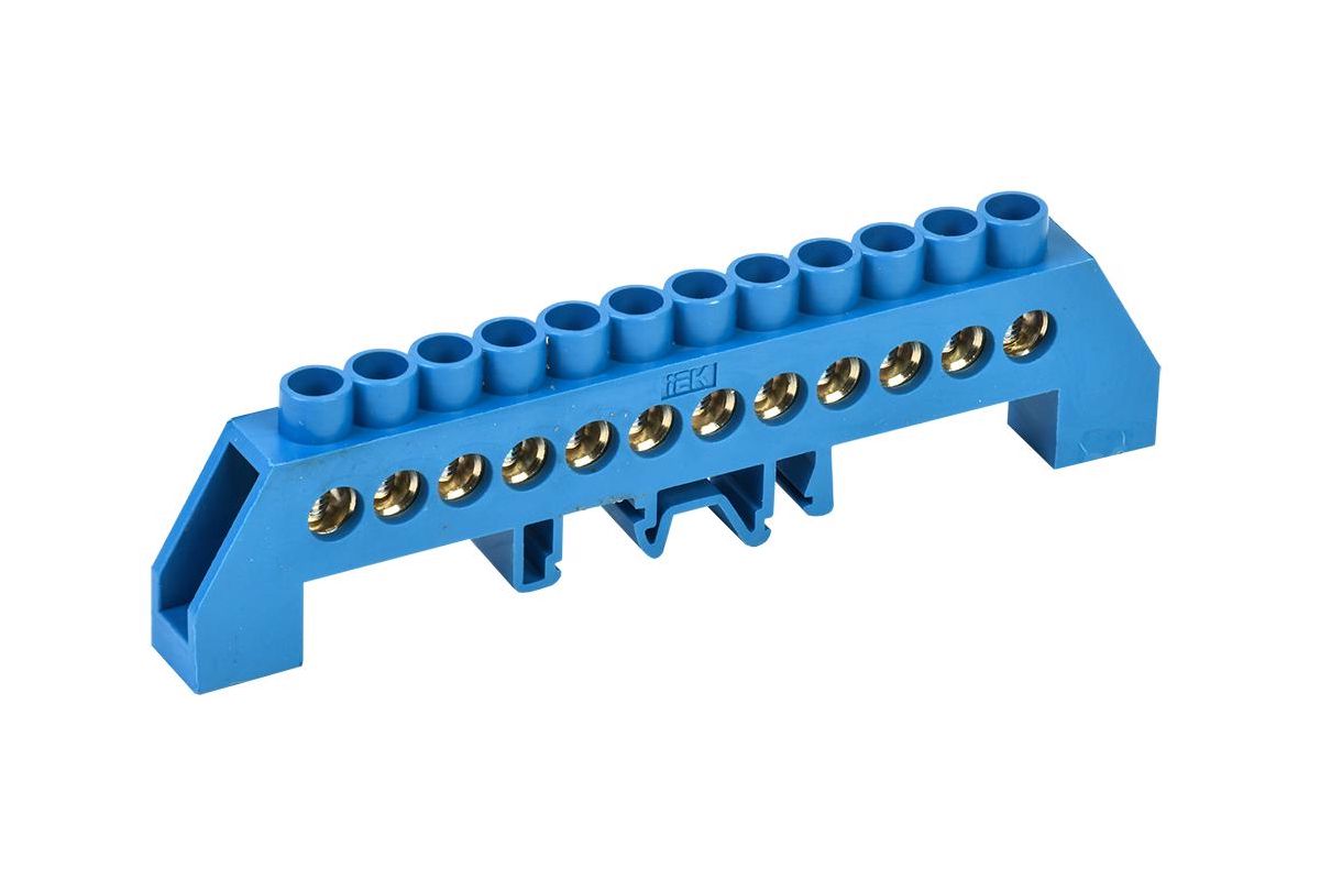 Шина нулевая IEK с DIN-изолятором типа "Стойка" ШНИ-8х12-КС 12. Шины с изолятором типа ШНИ предназначены для электрического и механического соединения нулевых, защитных и фазных проводников. Конструктивно шины ШНИ выполнены из латунной шины, установленной