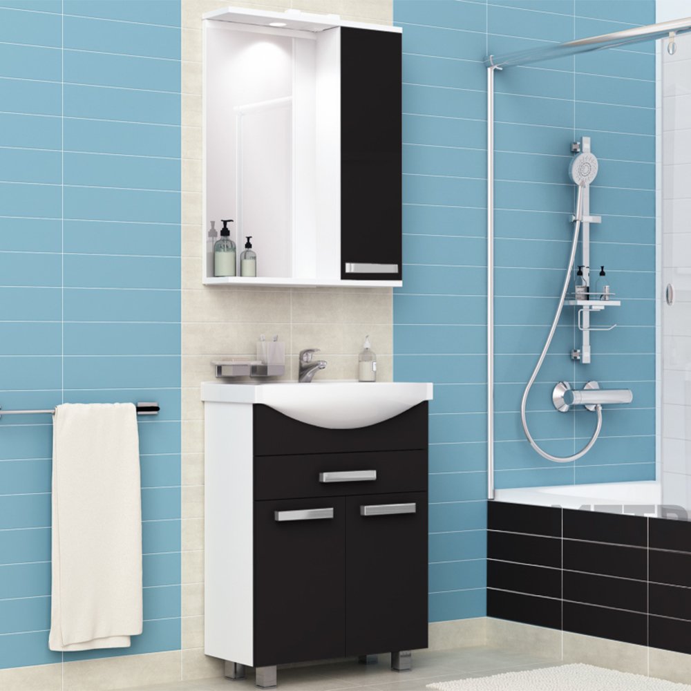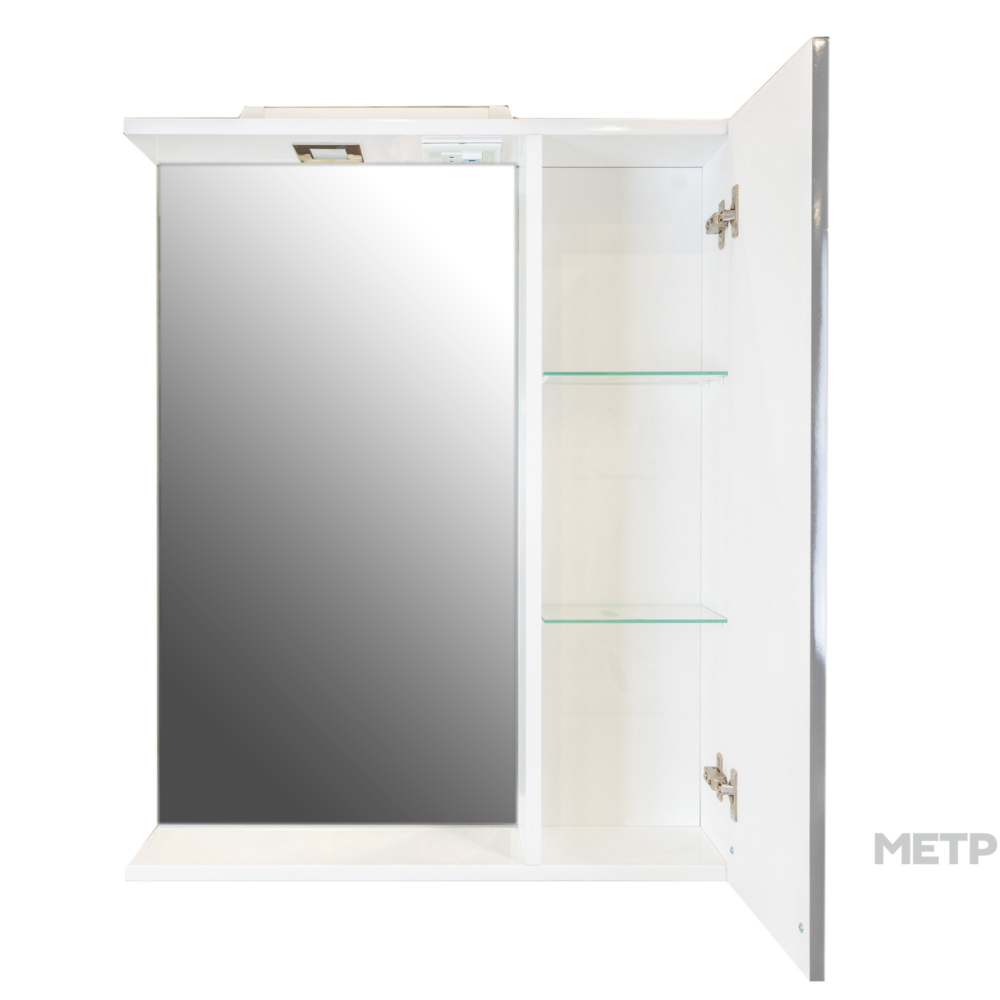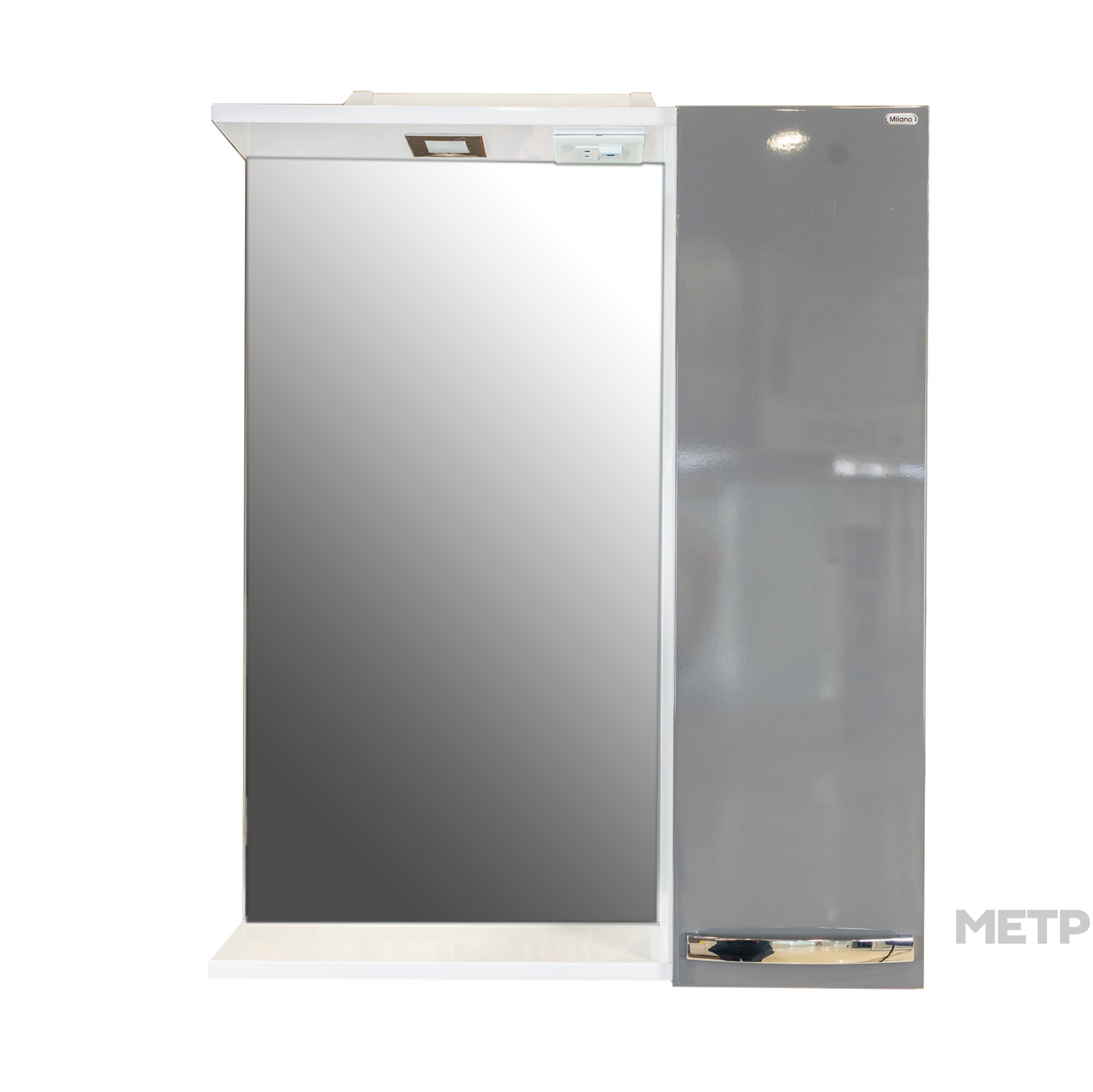 зеркало с боковым шкафчиком со светильником, розеткой, выключателем