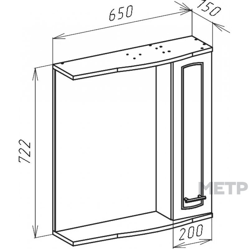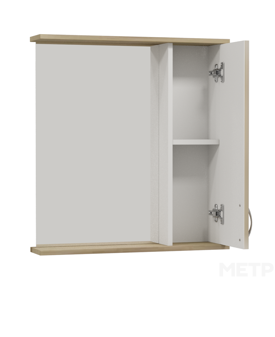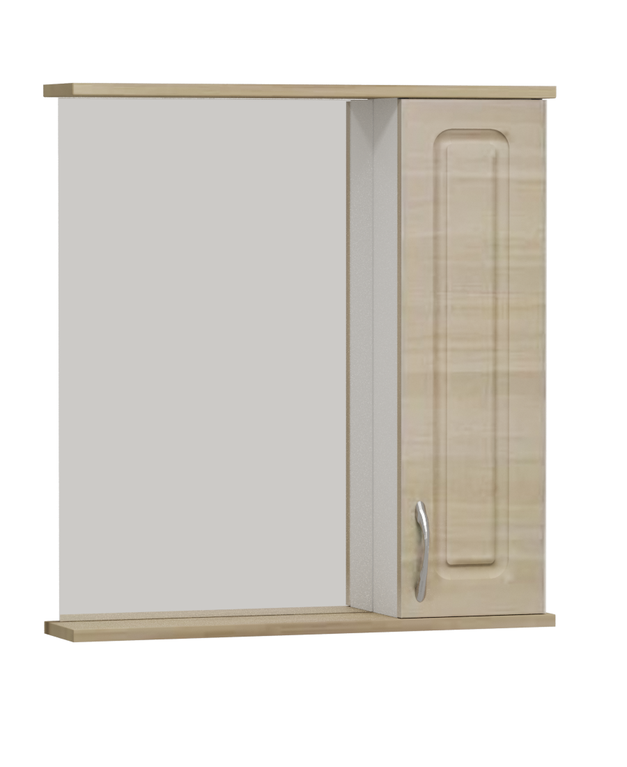 Зеркальный шкаф Классик шириной 65 см с удобным шкафом в цвете Светлая Лиственница. Внутренняя полка обеспечивают удобное хранение необходимых принадлежностей, сохраняя порядок и экономя пространство. Идеально для светлых и натуральных интерьеров.