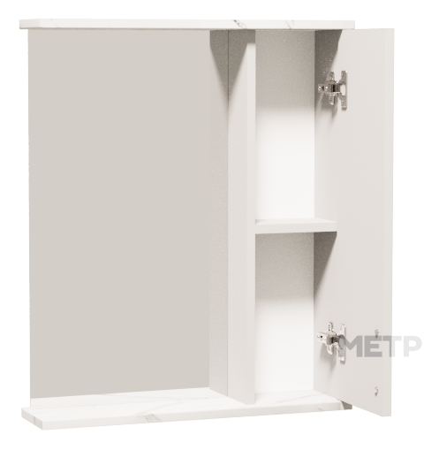 Зеркальный шкаф коллекции Мантуя шириной 60 см с отделением для хранения справа и фасадом в цвете Монте белый — элегантное и функциональное решение для ванной. Внутреннее пространство позволяет удобно разместить все необходимые принадлежности, сохраняя порядок. Идеально впишется в современный интерьер.