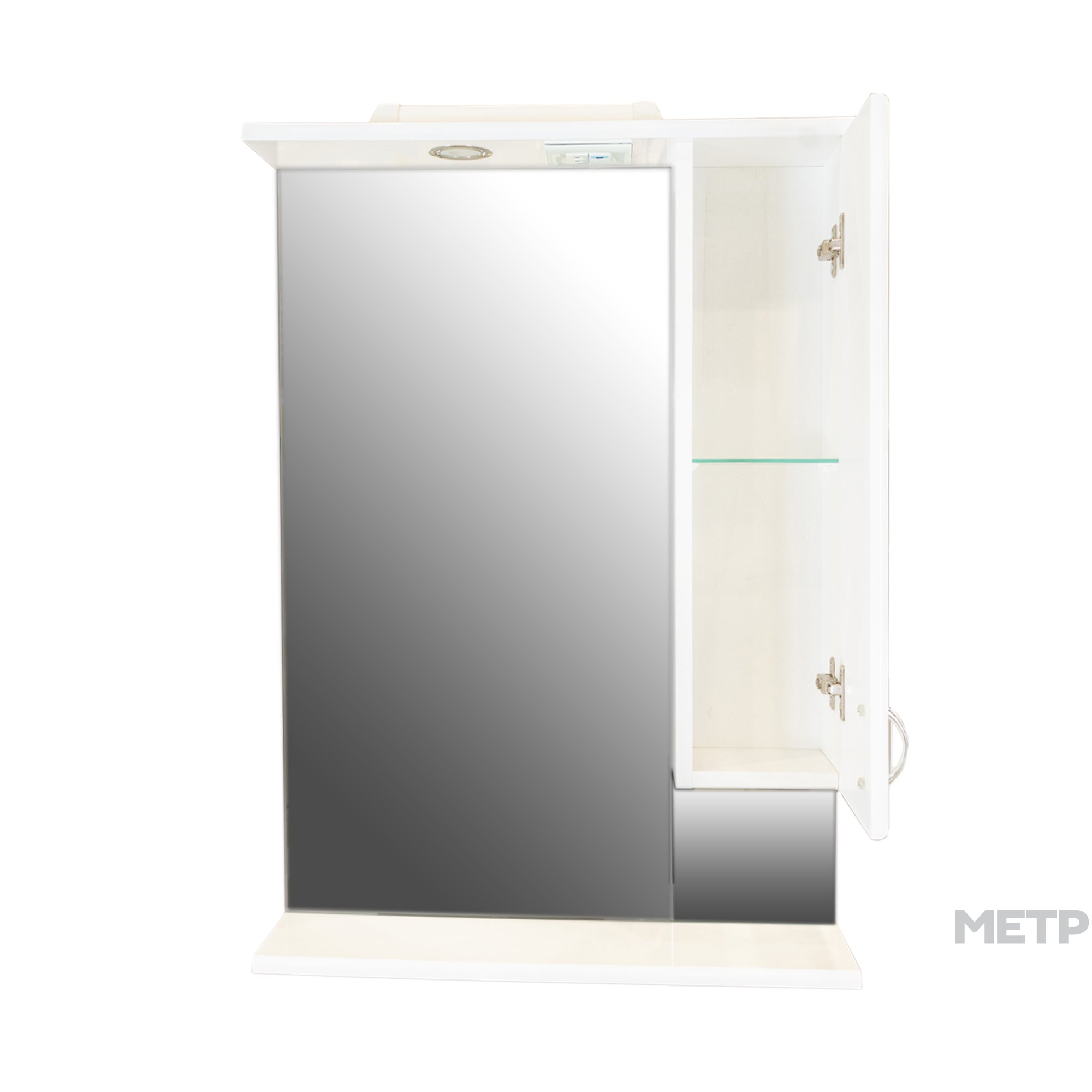 зеркало с боковым шкафчиком со светильником, розеткой, выключателем