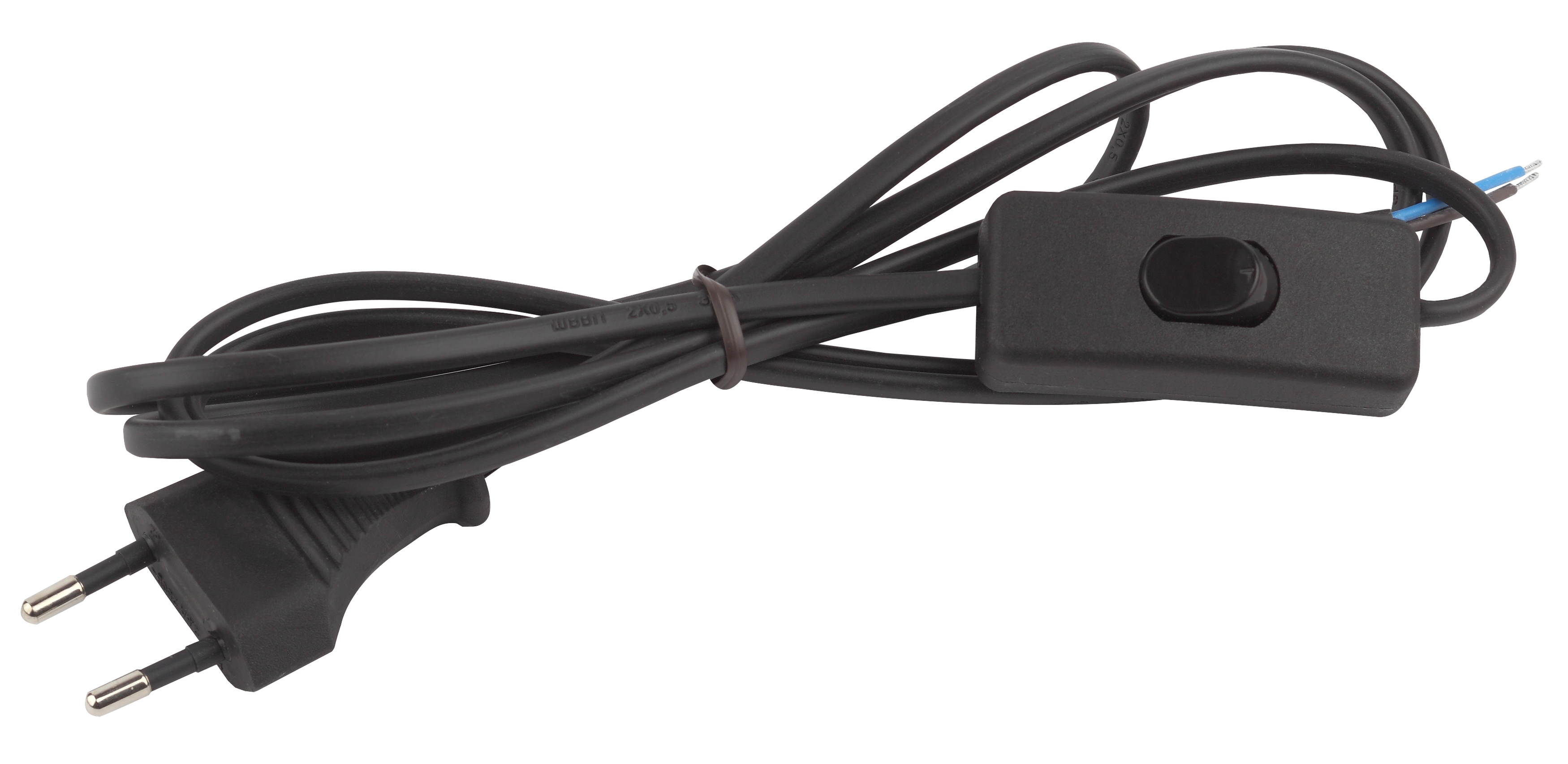 Шнур сетевой ЭРА с выключателем без заземления 1,8 м 2,5А черный IP20 для бра комплектуется проводом ШВВП из скрученных жил в прочной оболочке из пластика (сечение проводников 0,75 мм2) и вилкой-штепселем. С помощью изделия комплектуются или ремонтируются различные электроприборы. Произведено в России.
