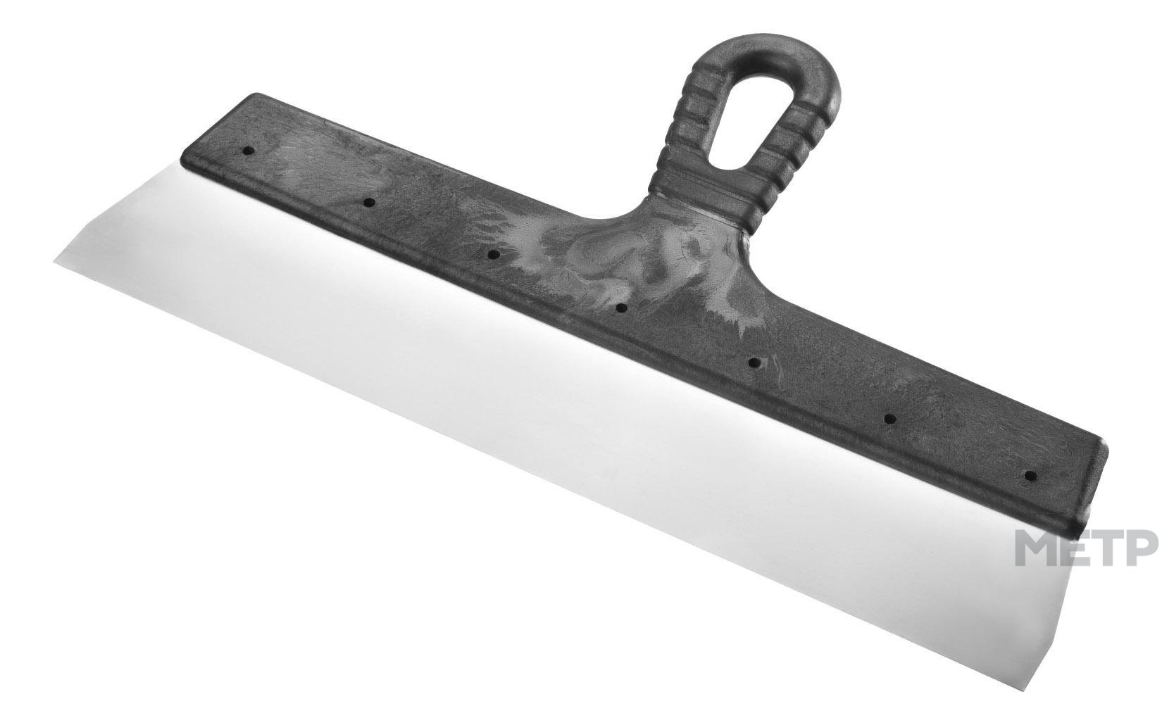 Шпатель универсальный, шириной 350 мм, Акор, изготовлен из стального полотна, с идеально гладкой блестящей поверхностью. Пластиковая ручка надежно удерживает металлическую часть на протяжении длительного рабочего процесса, не вызывая напряжения в руке. Классический инструмент предназначен для шпаклевки протяженных поверхностей.