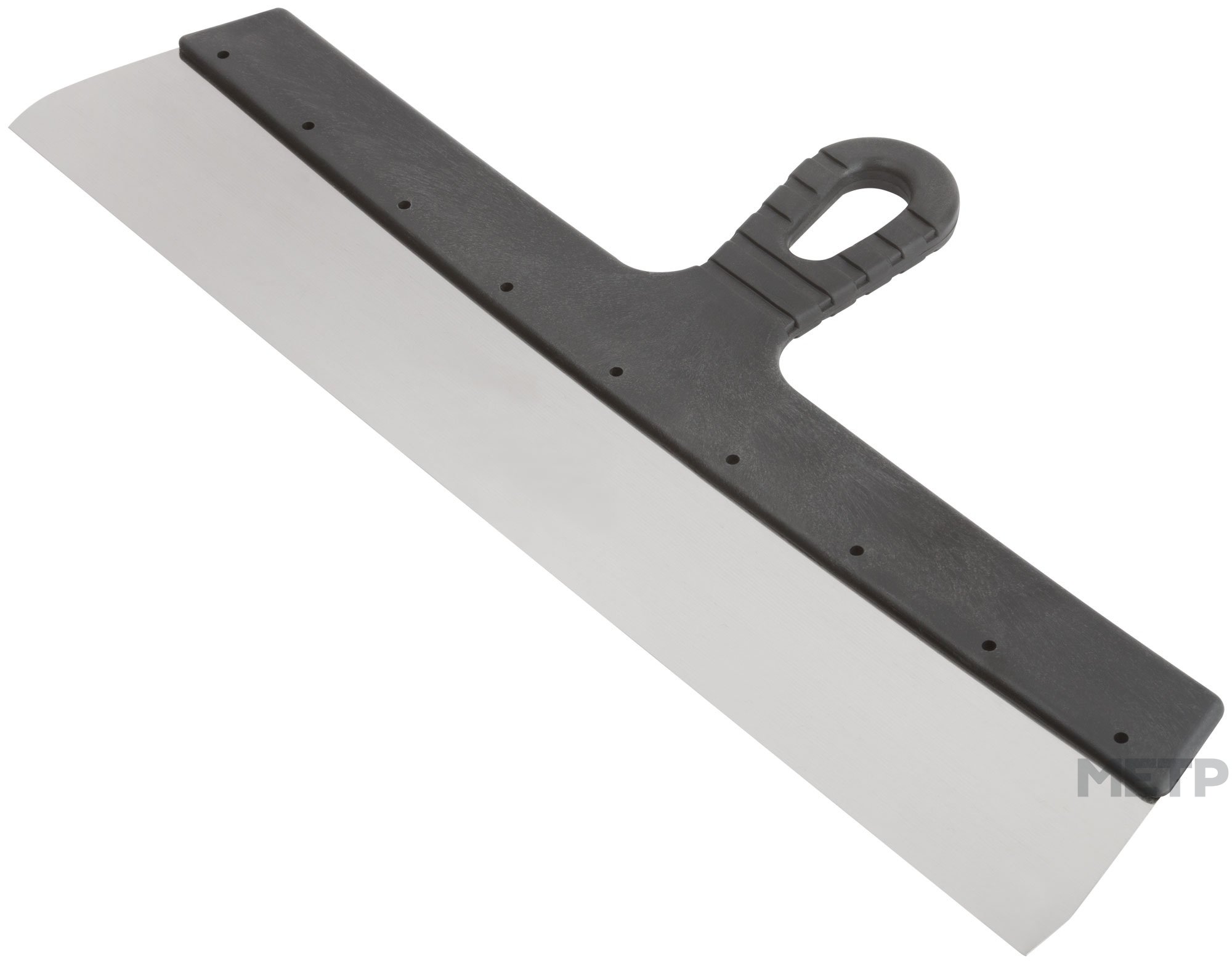Шпатель универсальный, шириной 600 мм, Акор, предназначен для идеального выравнивания строительных растворов на больших строительных площадях. Удобная пластмассовая рукоятка надежно удерживает стальное полотно при трудоемких рабочих процессах. Инструмент оставляет гладкий след на стенах и легко очищается от остатков клеевых смесей.