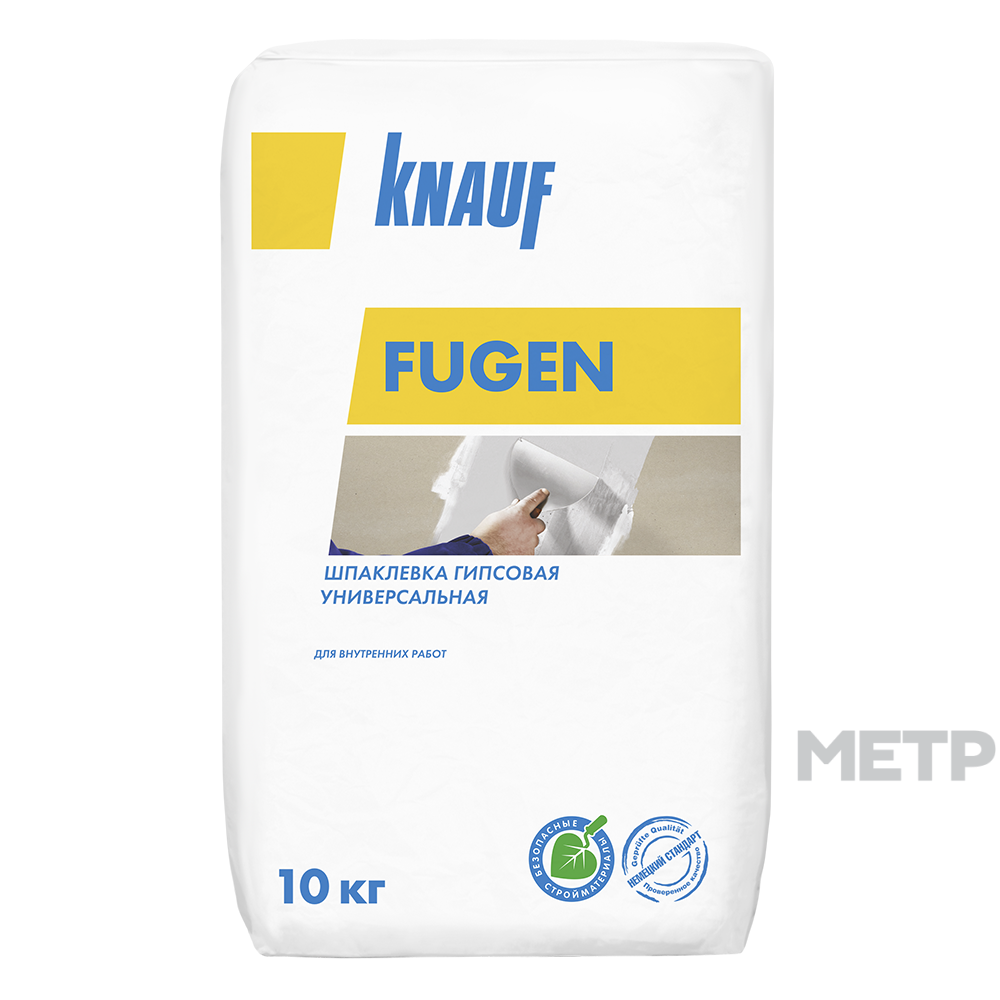 Шпатлевка Фуген Knauf 10 кг предназначена для заделки стыков: ГКЛ, имеющих утонённую и полукруглую утонённую кромку, с использованием армирующей ленты; ГВЛ и ГВЛВ имеющих фальцевую и прямую кромку, с использованием армирующей ленты; заделки трещин в поврежденных листах ГВЛ и ГВЛВ; тонкослойного шпаклевания ГВЛ, плоских бетонных и оштукатуренных поверхностей; заполнения стыков бетонных элементов, монтажа и заделки стыков гипсовых пазогребных плит; приклеивания к ровной поверхности гипсокартонных листов; склеивания и шпаклевания гипсовых элементов. Типы оснований: ГВЛ, ГВЛВ; ГКЛ, ГКЛВ; плоские бетонные и оштукатуренные поверхности; гипсовые