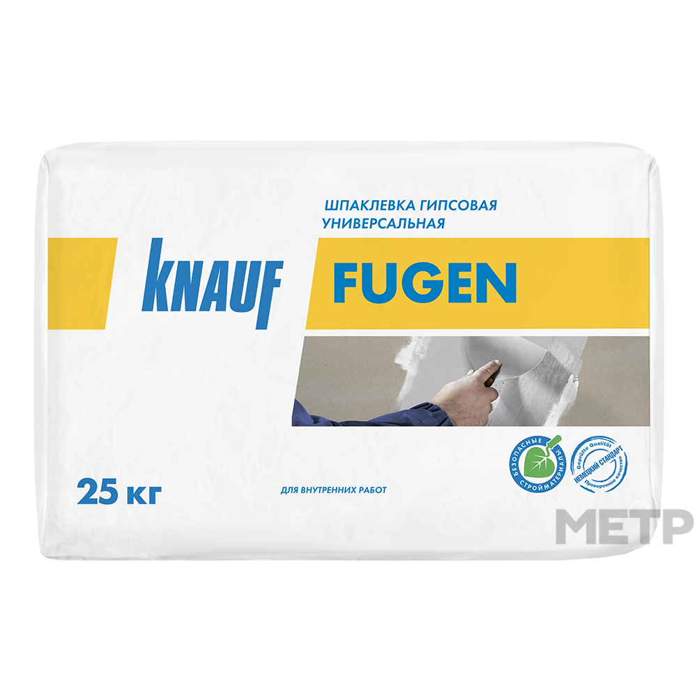 Шпатлевка Фуген Knauf 25 кг предназначена для заделки стыков: ГКЛ, имеющих утонённую и полукруглую утонённую кромку, с использованием армирующей ленты; ГВЛ и ГВЛВ имеющих фальцевую и прямую кромку, с использованием армирующей ленты; заделки трещин в поврежденных листах ГВЛ и ГВЛВ; тонкослойного шпаклевания ГВЛ, плоских бетонных и оштукатуренных поверхностей; заполнения стыков бетонных элементов, монтажа и заделки стыков гипсовых пазогребных плит; приклеивания к ровной поверхности гипсокартонных листов; склеивания и шпаклевания гипсовых элементов. Типы оснований: ГВЛ, ГВЛВ; ГКЛ, ГКЛВ; плоские бетонные и оштукатуренные поверхности; гипсовые