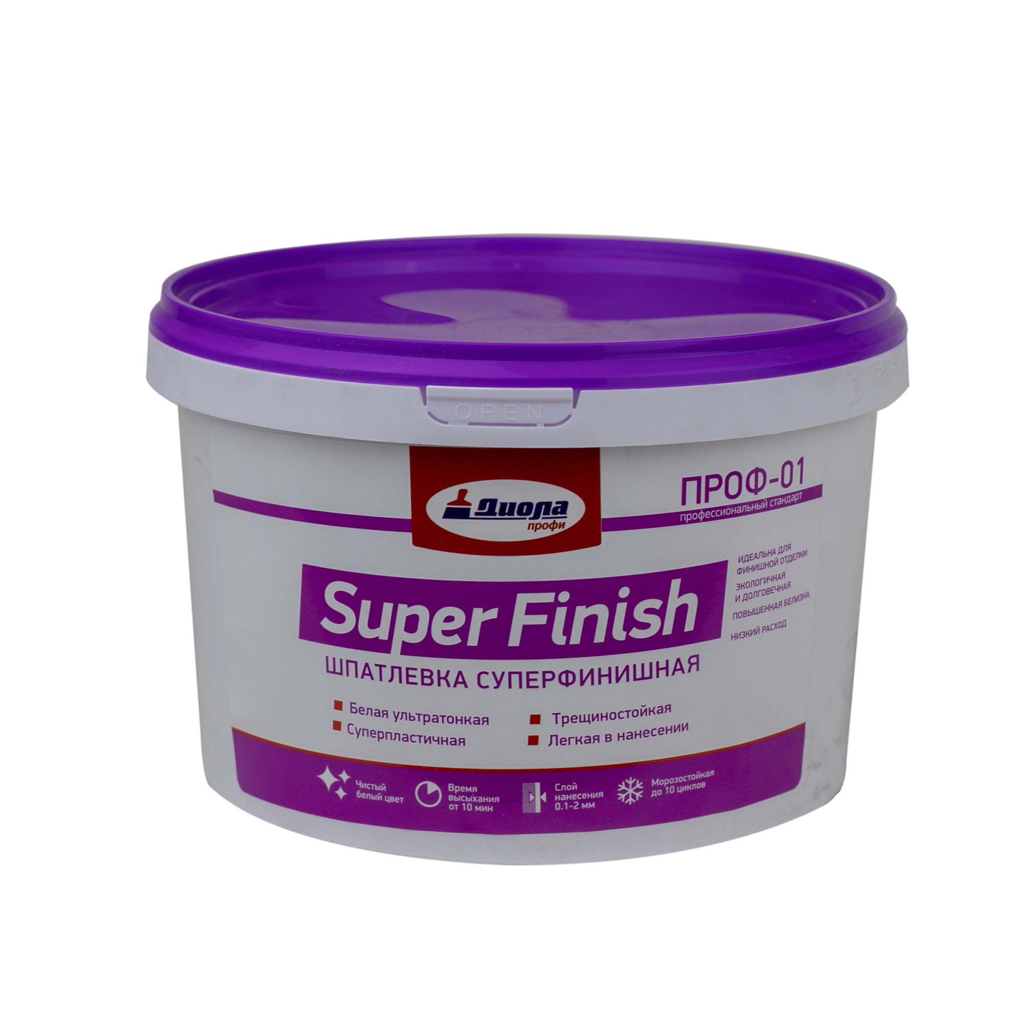 Шпатлевка ПРОФ-01 суперфинишная белая 3 кг, - готовая полимерная шпатлевка предназначена для высококачественного финишного шпатлевания стен и потолков внутри сухих помещений. Создает прочный и гладкий, паропроницаемый слой белого цвета. Рекомендуемые поверхности: для финишного шпатлевания поверхности гипсокартонных и гипсоволокнистых листов, оштукатуренных и бетонных поверхностей, стеклохолста.
