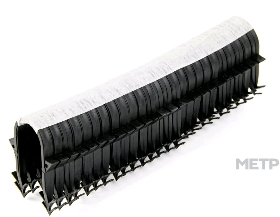 Специально разработанная пластиковая скоба служит для надежного крепления любых типов труб систем теплого пола к теплоизоляции из экструзионного пенополистерола. Изготавливается методом литья из полипропилена черного цвета, с зубцами в основании. Подходит для всех типов труб напольного отопления.