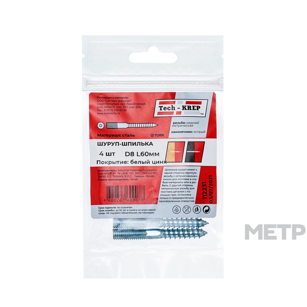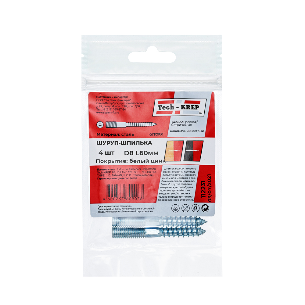 Шпилька сантехническая 8х60 мм имеет с одной стороны шурупную резьбу с острым наконечником, с другой стороны – метрическую резьбу со шлицем TORX 20, посередине шестигранник для ключа. Применение: крепление хомутов трубопроводов и сантехнического оборудования к деревянным основаниям без предварительного сверления и к плотным основаниям (бетон, кирпич, природный камень) с предварительным сверлением и в комплекте с пластиковым дюбелем соответствующего размера.