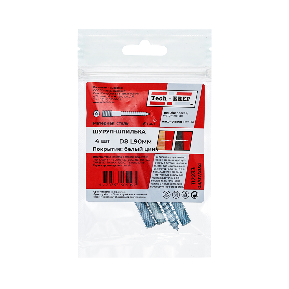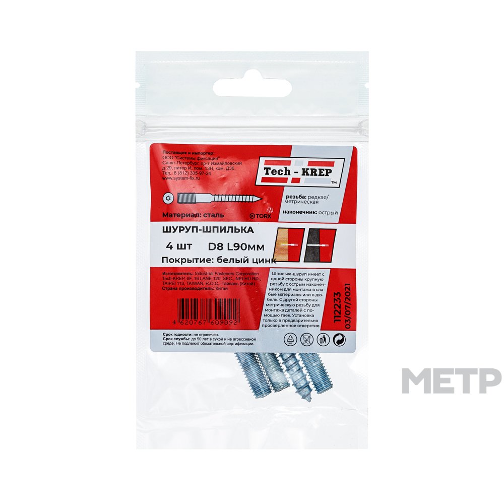 Шпилька сантехническая 8х90 мм имеет с одной стороны шурупную резьбу с острым наконечником, с другой стороны – метрическую резьбу со шлицем TORX 20, посередине шестигранник для ключа. Применение: крепление хомутов трубопроводов и сантехнического оборудования к деревянным основаниям без предварительного сверления и к плотным основаниям (бетон, кирпич, природный камень) с предварительным сверлением и в комплекте с пластиковым дюбелем соответствующего размера.