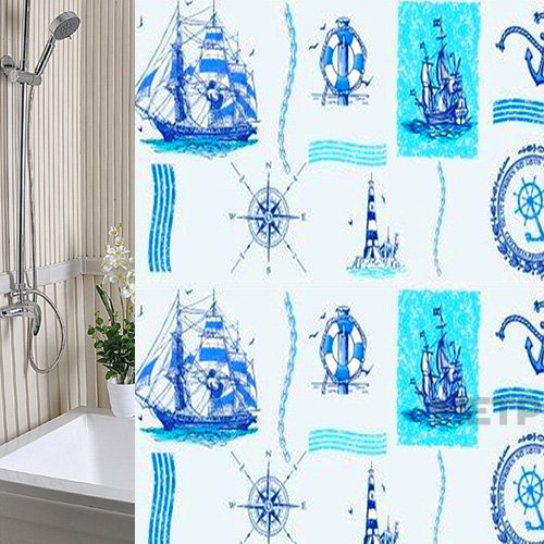 Штора для ванной Альфа-Стиль 180 х 180 см полиэстер Корабли цвет голубой