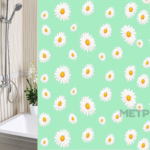 Штора для ванной Альфа-Стиль 180 х 180 см полиэтилен Ромашки цвет зеленый