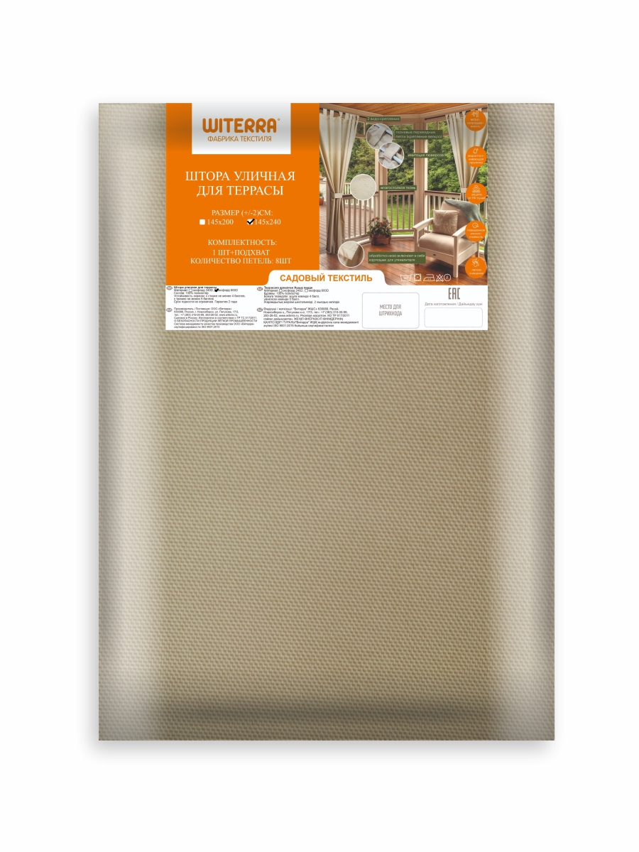 Уличая штора 145*240 см от WITERRA станет отличным садовым декором для открытой веранды, террасы или беседки. Шторы выполнены из практичной, плотной ткани - Оксфорд плотностью 600D с водоотталкивающей пропиткой. Он не подвержен проникновению грязи в волокна ткани, устойчив к истиранию, не выгорает на солнце. Уличные шторы сделают ваш отдых на природе очень комфортным: