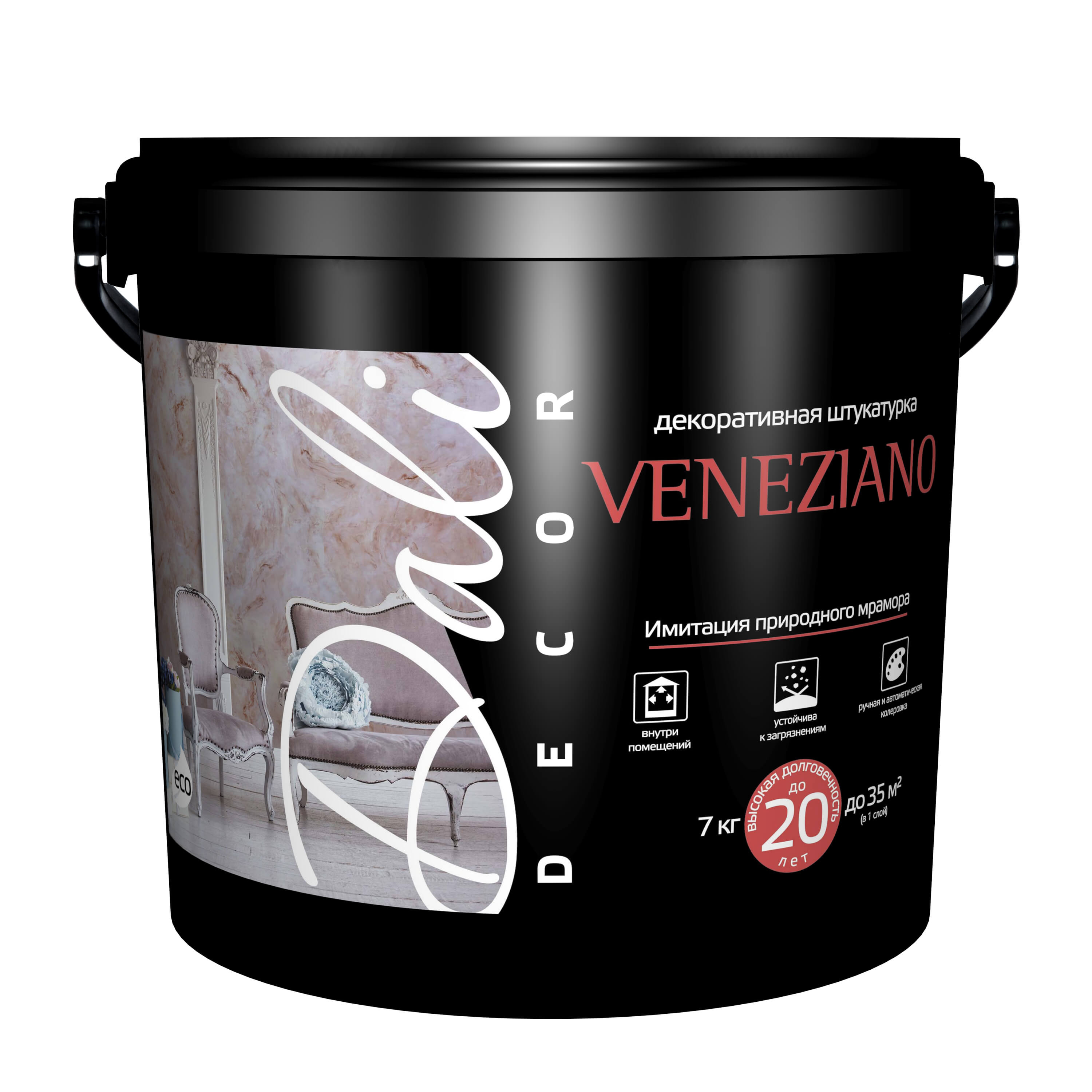 Декоративная штукатурка Венецианская 7 кг (ведро) образует гладкое покрытие, имитирующее натуральный полированный камень: мрамор, гранит, яшму, малахит, лазурит и др. Предназначена для защитно-декоративной обработки стен, потолков и различных элементов интерьера в отапливаемых и неотапливаемых жилых и общественных помещениях, в том числе с повышенной влажностью воздуха и интенсивной эксплуатационной нагрузкой. Область применения: внутри помещений, по тщательно выровненным минеральным (бетон, кирпич, гипс, цемент, гипсокартон, шпатлевка, штукатурка и т.д.) и другим (ДВП, ДСП, МДФ и т.д.) поверхностям. Разрешена к применению в детских, дошкольных, лечебных и общеобразовательных учреждениях.