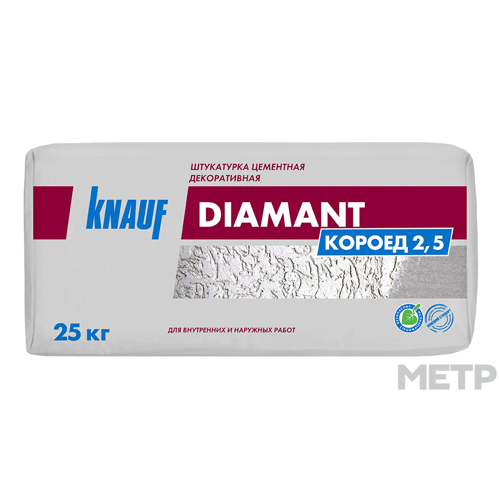 Штукатурка декоративная Knauf короед фракция 2,5мм 25кг - минеральная структурная штукатурка на цементной основе с модифицирующими добавкам, обладающая водоотталкивающими свойствами. Подходит для нанесения на разные виды оснований: бетон, гипсокартон, штукатурку.