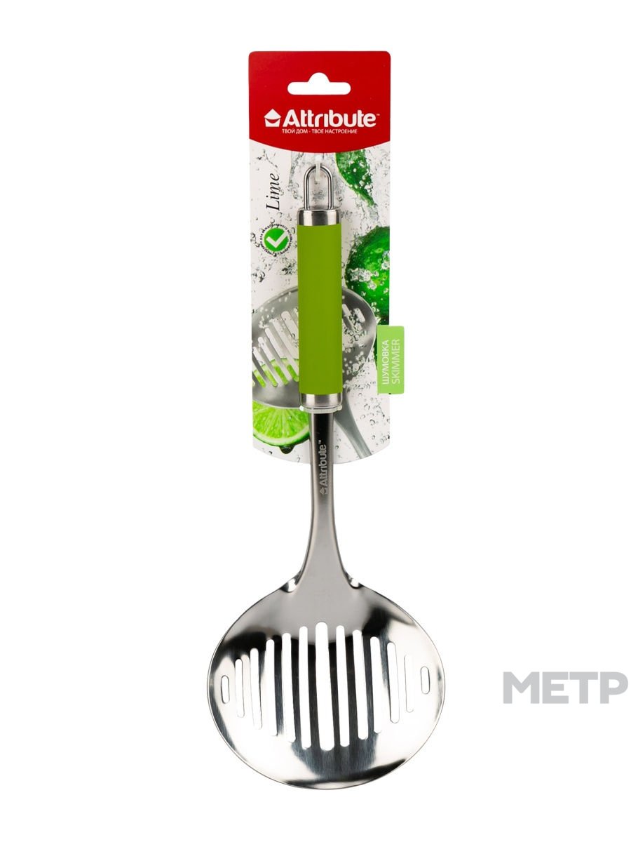 Шумовка Attribute Lime 30 см из пластика является легким, но прочным помощником в приготовлении блюд. Позволяет отделить блюда от воды, избегая контакта с горячей жидкостью. Не влияет на вкус и запах еды, легко очищается от загрязнений и не впитывает посторонние запахи.