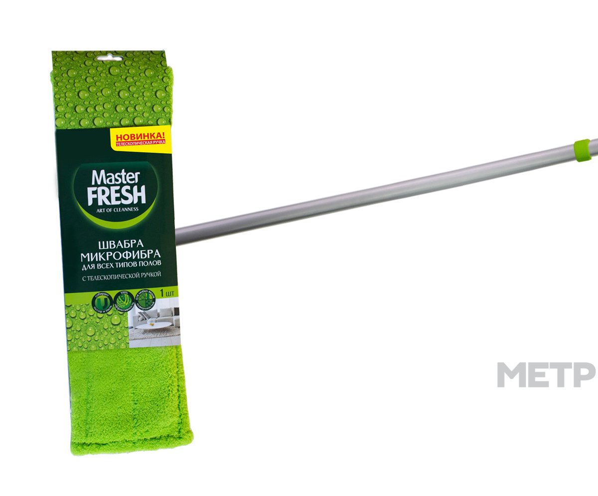 Швабра-флеттер Master FRESH с насадкой из микрофибры бархат - это современный, доступный товар для уборки дома. Удобная регулируемая по длине ручка-телескоп. Микрофибра эффективна для удаления пыли и мелкого мусора, легко удаляет стойкие загрязнения, не оставляет разводов на поверхности. Обладает антистатическими свойствами, долговечна в использовании. Идеально подходит для любых типов напольных покрытий. Размеры платформы швабры и насадок стандартные и взаимозаменяемые.