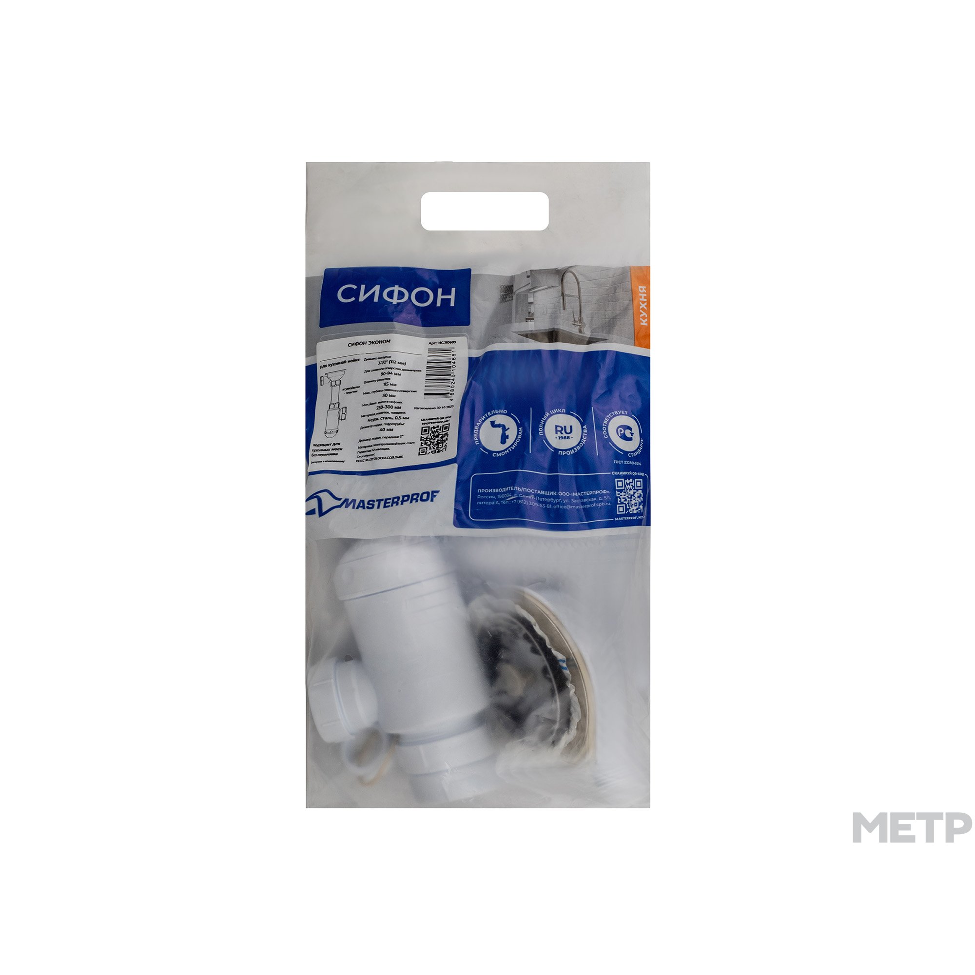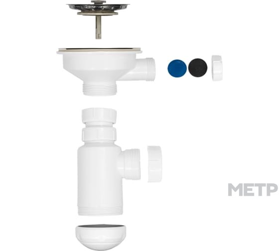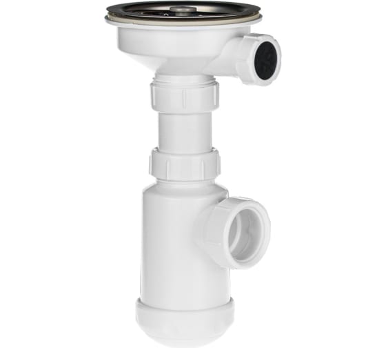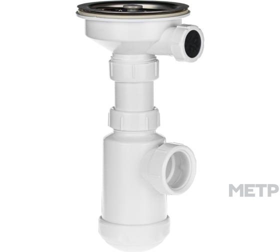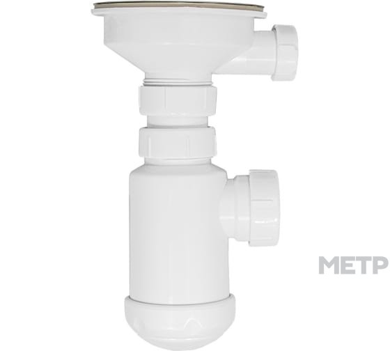 На данном сифоне реализован разборный выпуск . Выпуск сифона оснащён решёткой из нержавеющей стали диметра 115 мм и толщиной 0,5мм. Подходит для раковин с диаметром сливного отверстия 90-94мм.Резьба для его установки 1 1/2". При необходимости возможно подключить переливной патрубок (резьба для его установки 1"). В стандартной комплектации отверстие для установки перелива заглушено.