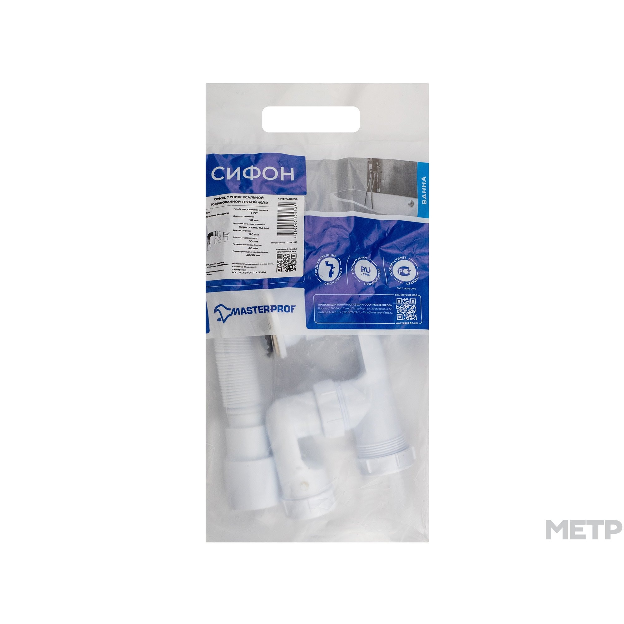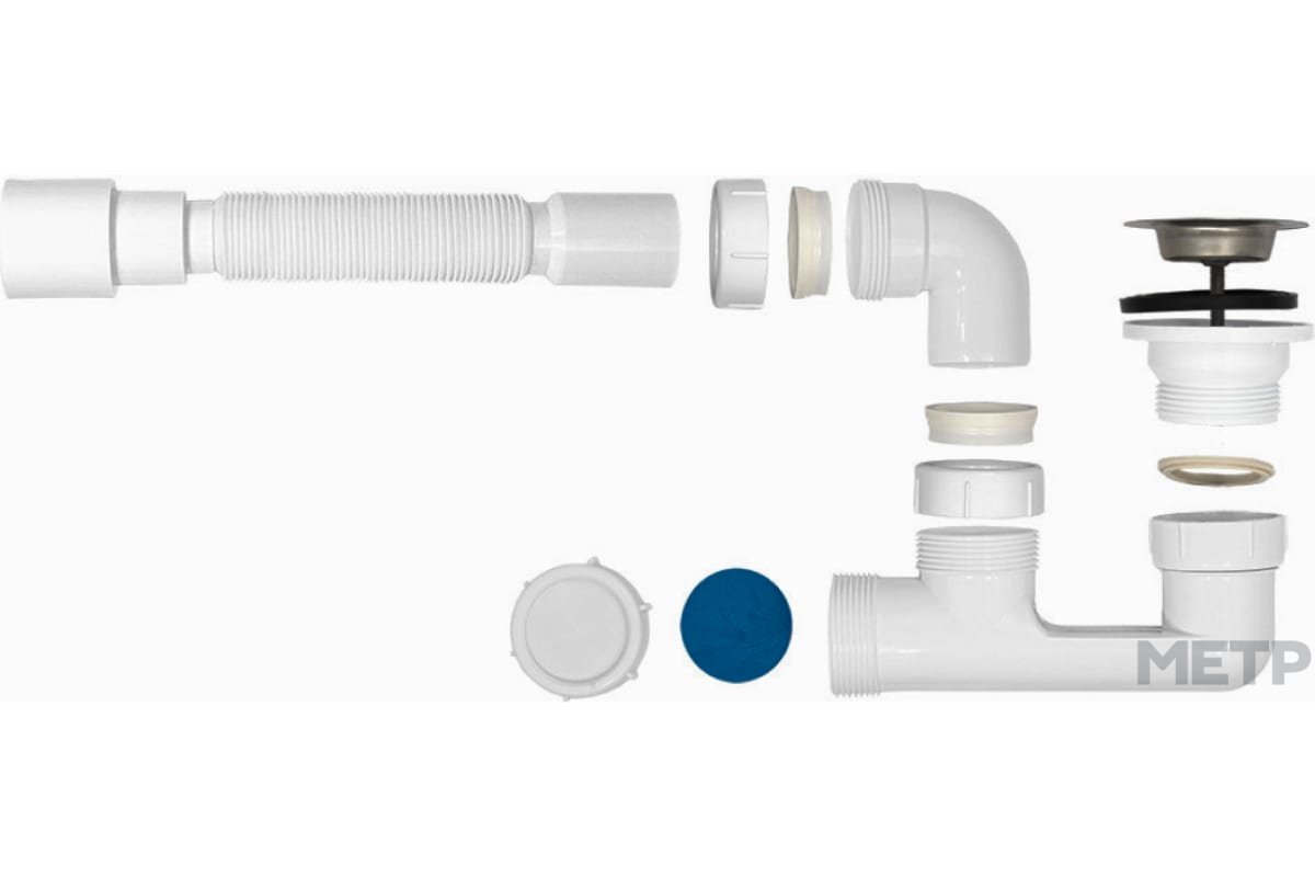 Выпуск сифона оснащён решёткой из нержавеющей стали диаметра 70 мм и толщиной 0,5мм. Подходит для ванн с отверстием слива Ø50 мм ,для душевых поддонов толщиной до 10 мм.