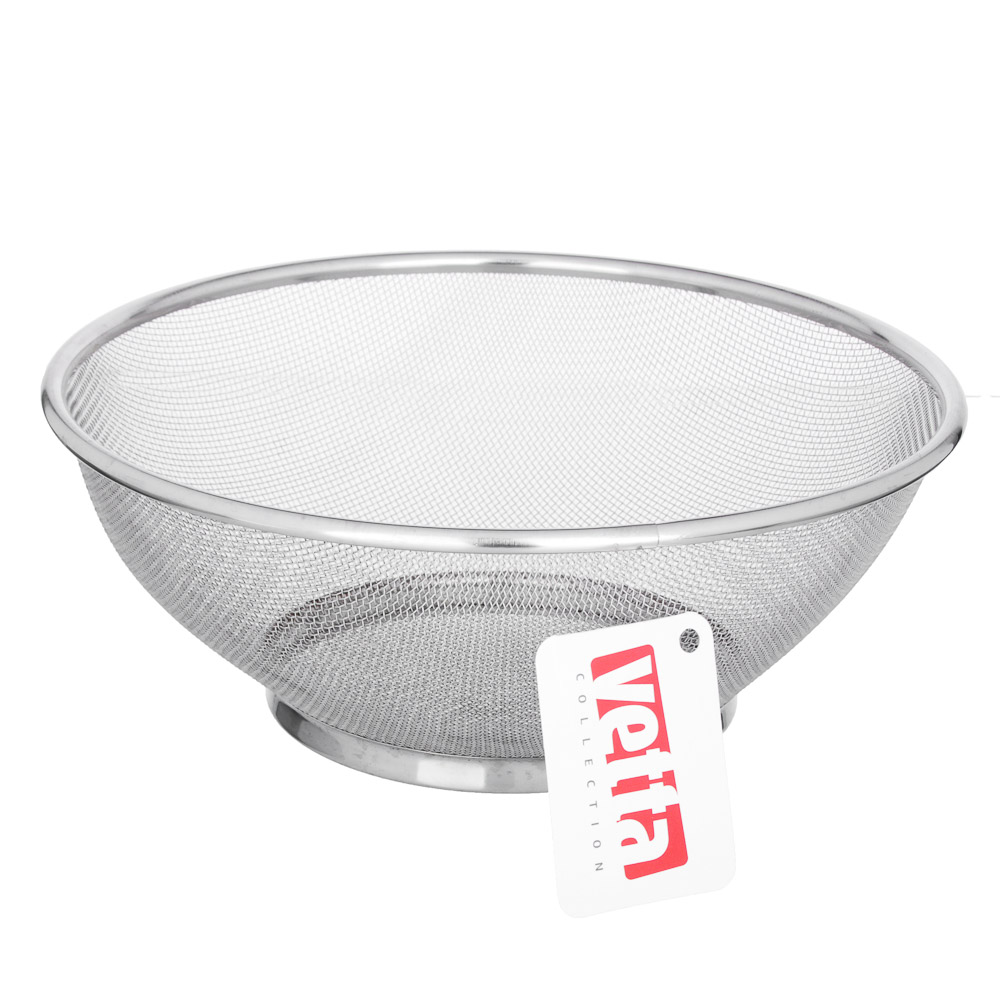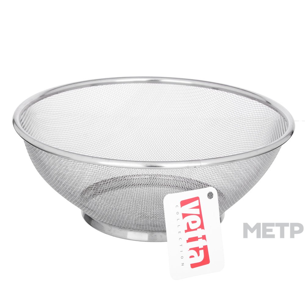 Сито VETTA 24 см. Сито диаметром 24 см предназначено для промывания фруктов, ягод, овощей, круп, протирания помидоров на сок. Его не нужно придерживать, есть специальное дно-подставка. Изготовлено из нержавеющей стали. В нем удобно хранить фрукты, так как в нем они хорошо проветриваются и не гниют. Сито легко моется и быстро высыхает. Подходит для мытья в посудомоечной машине.