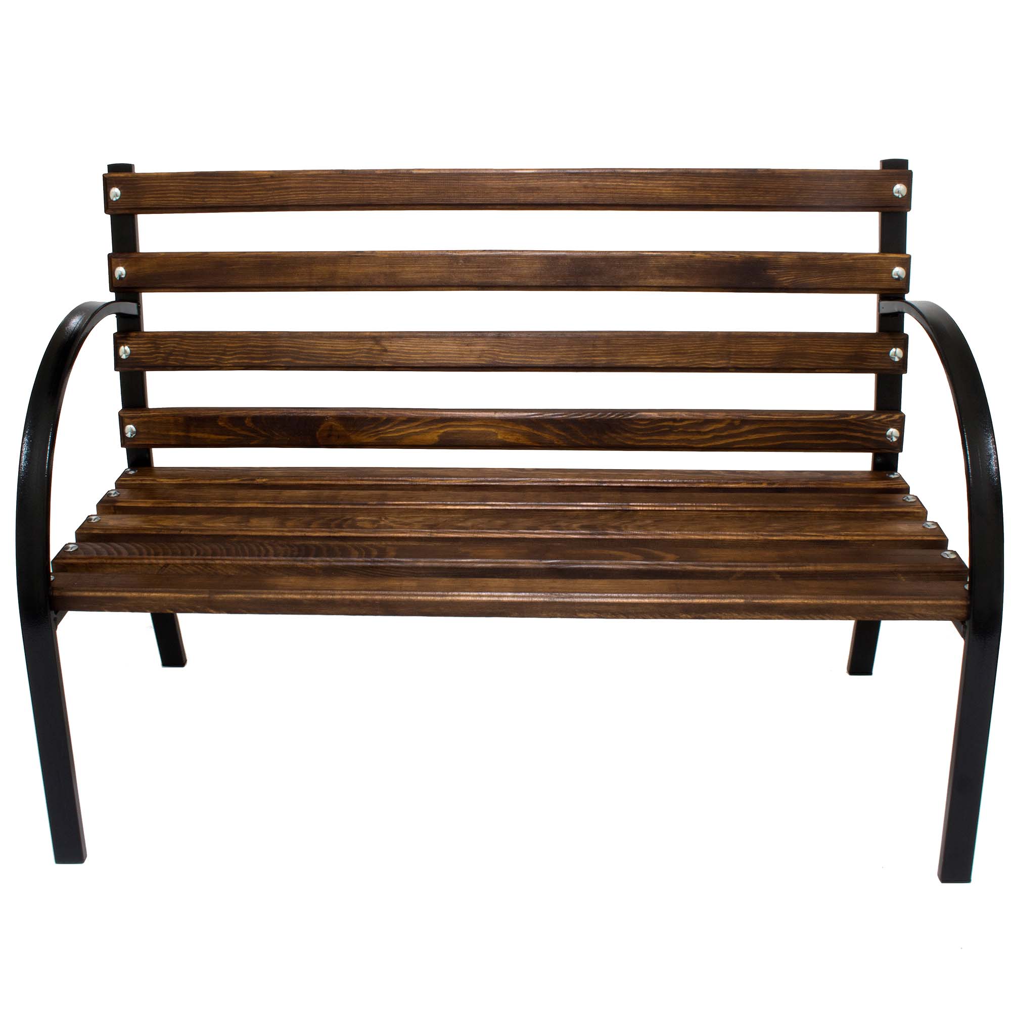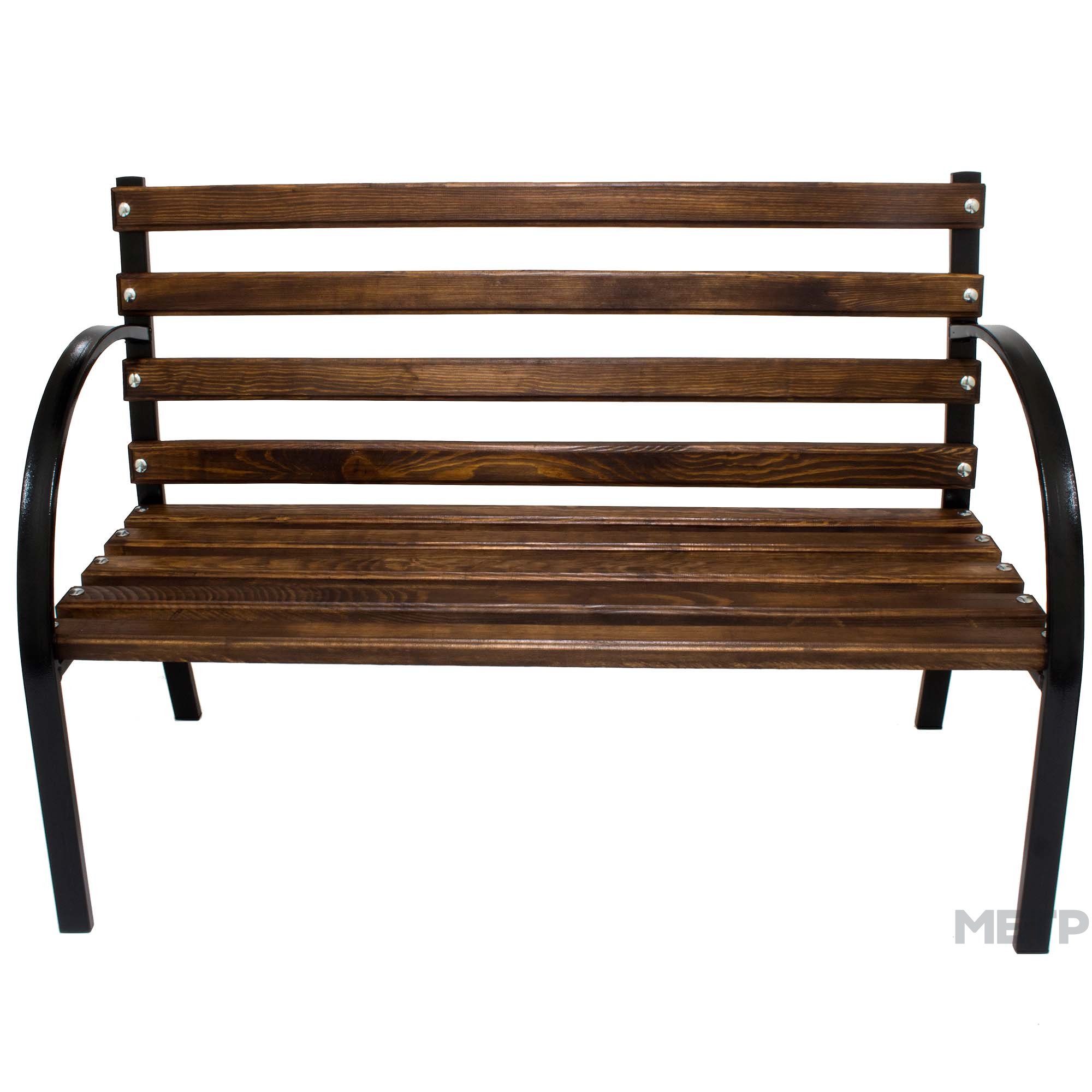 Скамейка садовая София 120x70x87см (со спинкой). Вес - 18 кг. Цвет коричневый. Изготовлена из дерева сосны и стальных труб. Толщина труб 1,5 мм. Деревянные бруски покрыты морилкой, которая защищает от появления плесневых и дереворазрушающих грибков. Размер брусков 30х60х1200 мм. Скамейка покрыта лаком, он придает глянец, отталкивает влагу и позволяет сохранить насыщенность цвета надолго. Лак выдерживает температуру до 150 градусов и не выделяет вредных веществ. Место для использования скамейки - улица и закрытое помещение.