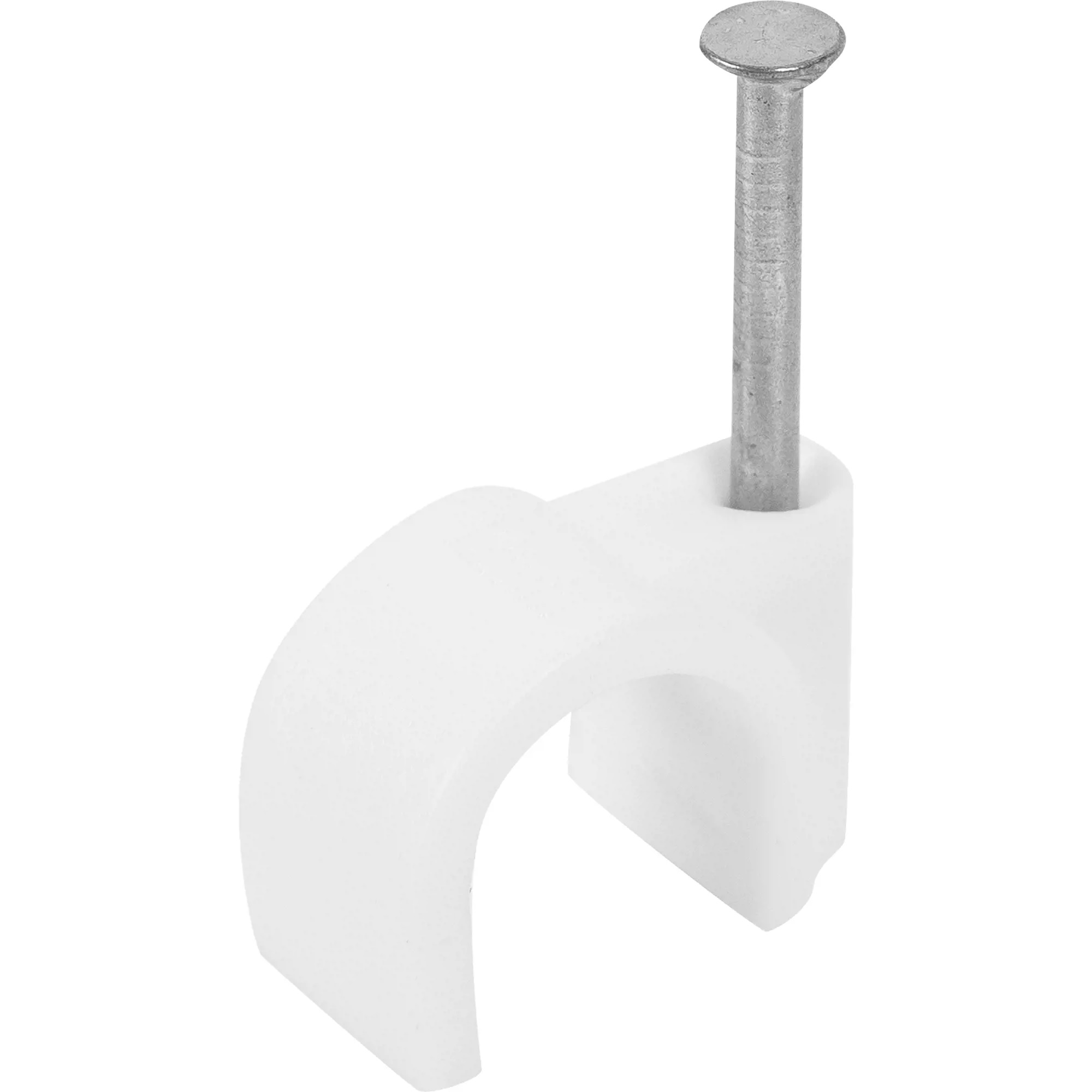 Скоба для кабеля IEK круглая 10мм пластик белый 100шт. предназначена для быстрого и надежного крепления круглых кабелей. Возможно крепление к дереву, прессованному картону и швам кирпичной кладки, к штукатурке, бетону, кирпичу. Изготовлена из гибкого негорючего ударопрочного полипропилена, гвоздь - закаленная оцинкованная сталь