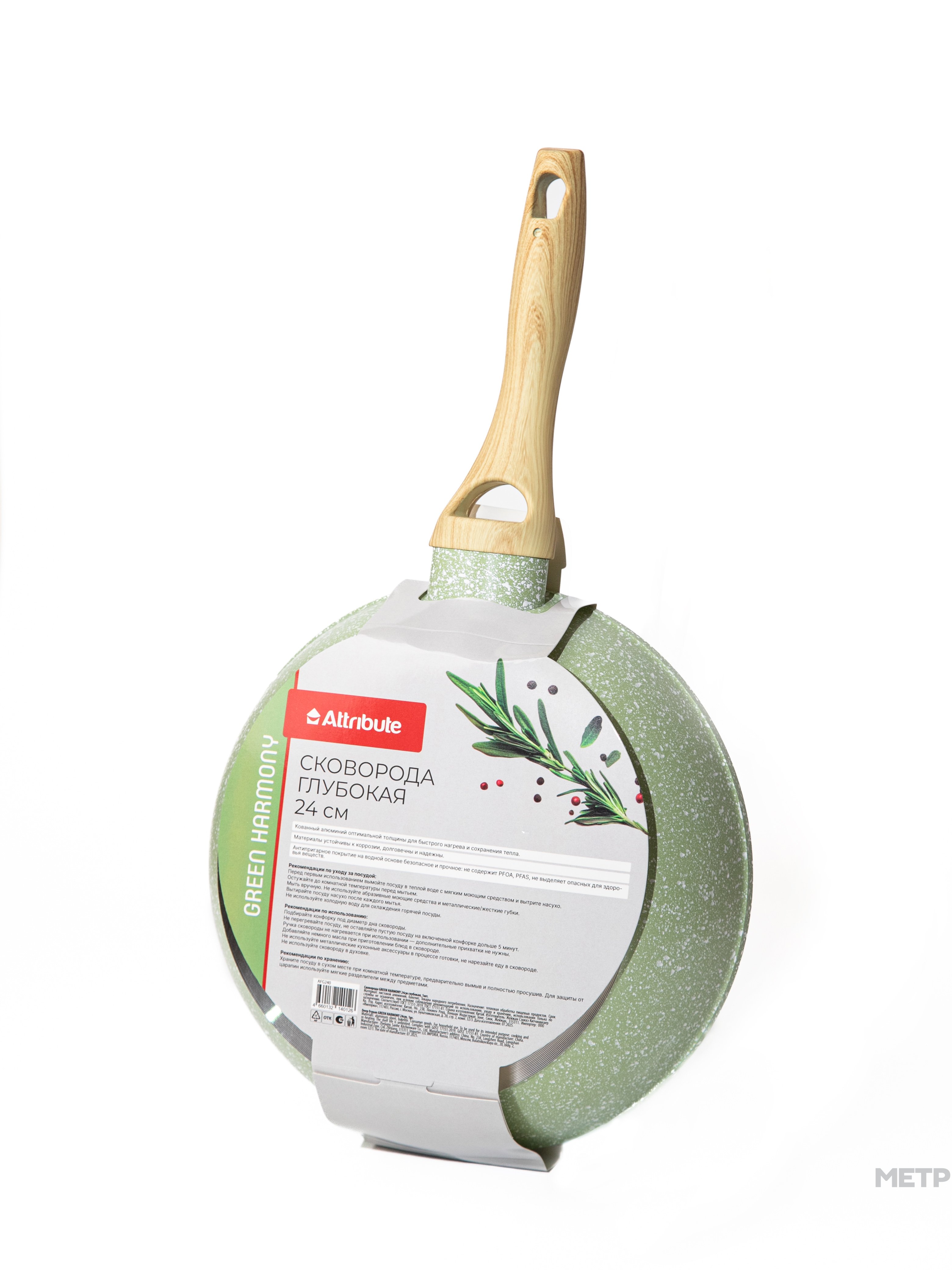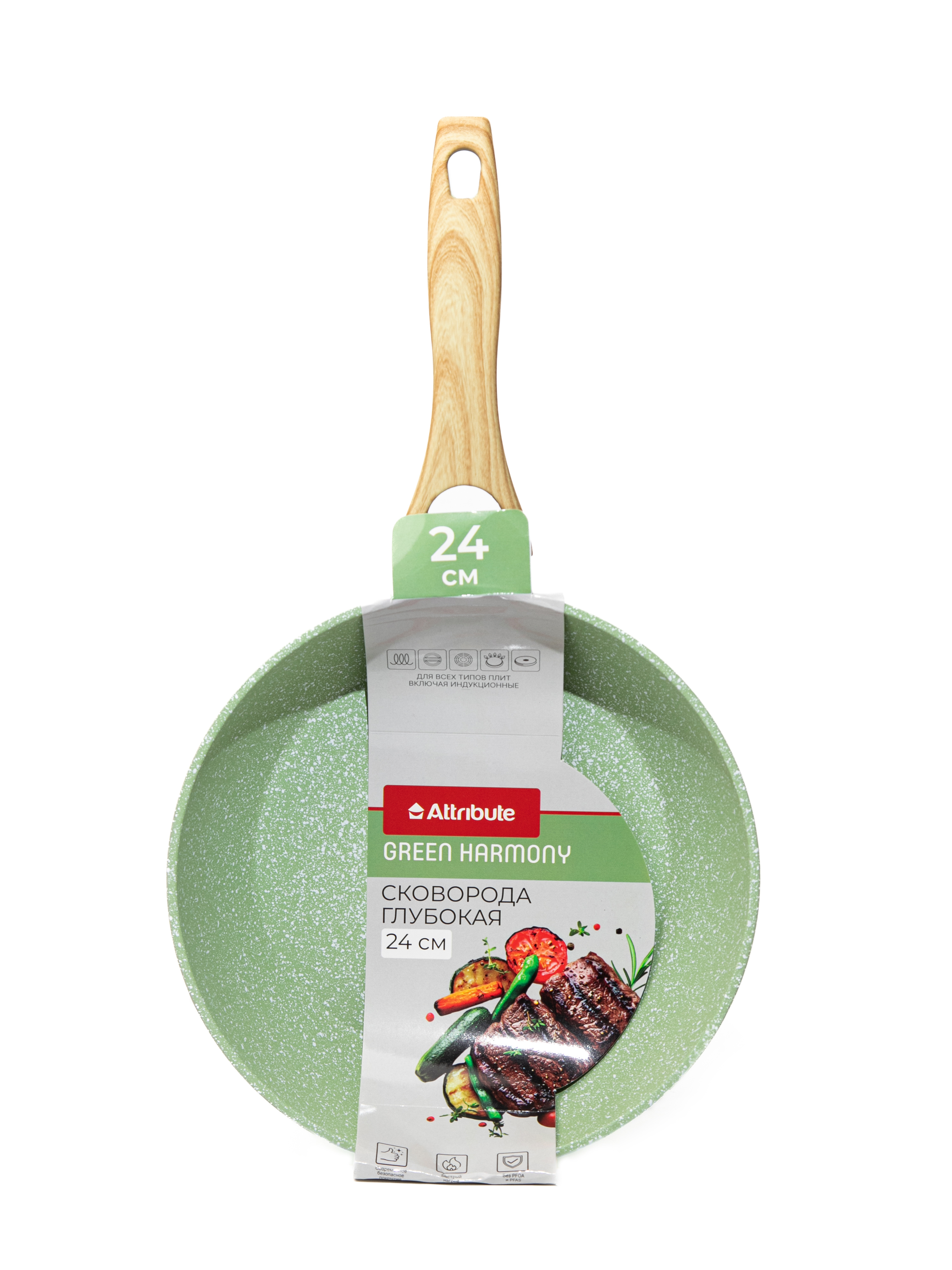 Сковорода серии GREEN HARMONY изготовлена из кованого алюминия. Имеет особо прочное и износостойкое двухслойное антипригарное покрытие DIAMOND. Верхний слой покрытия обеспечивает высокие антипригарные свойства и легкость очистки сковороды. Нижний слой прочно фиксирует антипригарное покрытие на поверхности посуды. Можно готовить пищу с добавлением малого количества масла или без него, подходит для ежедневного использования. Безопасное покрытие. Покрытие не содержит PFOA, свинца и кадмия, соответствует нормам на материалы, контактирующие с пищей. Подходит для всех типов плит, включая индукционные. Удобная ручка из термостойкого бакелита с покрытием soft-touch не выскальзывает из рук, не нагревается, имеет отверстие для подвешивания